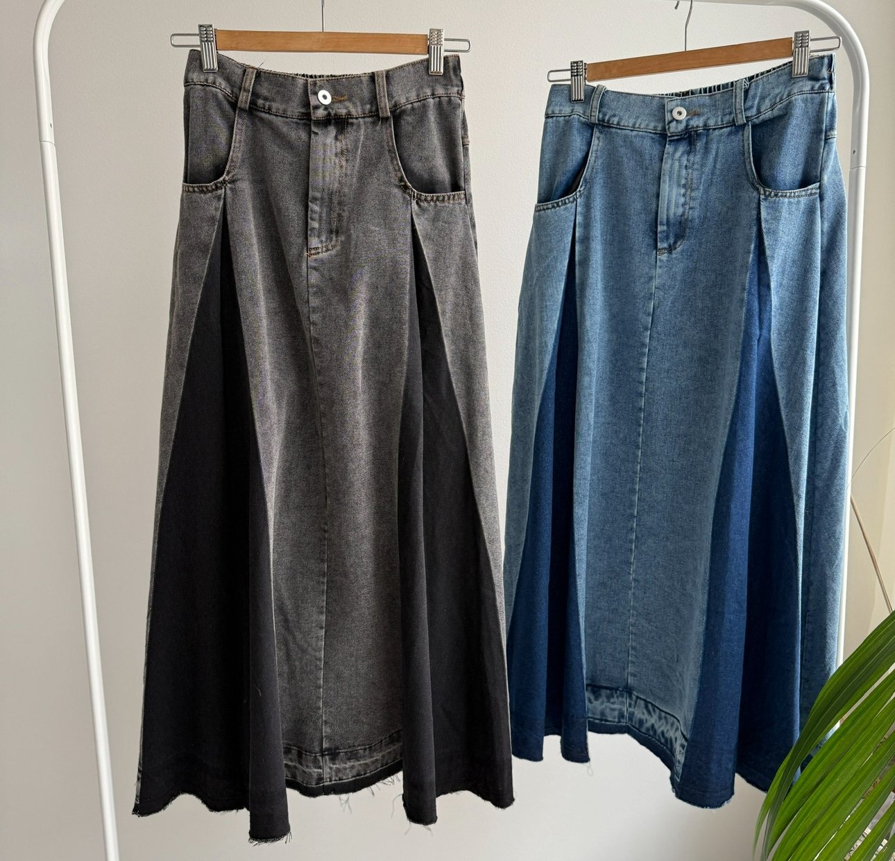 ●【LIVEご紹介アイテム】●バイカラーデニムスカート [241031114]