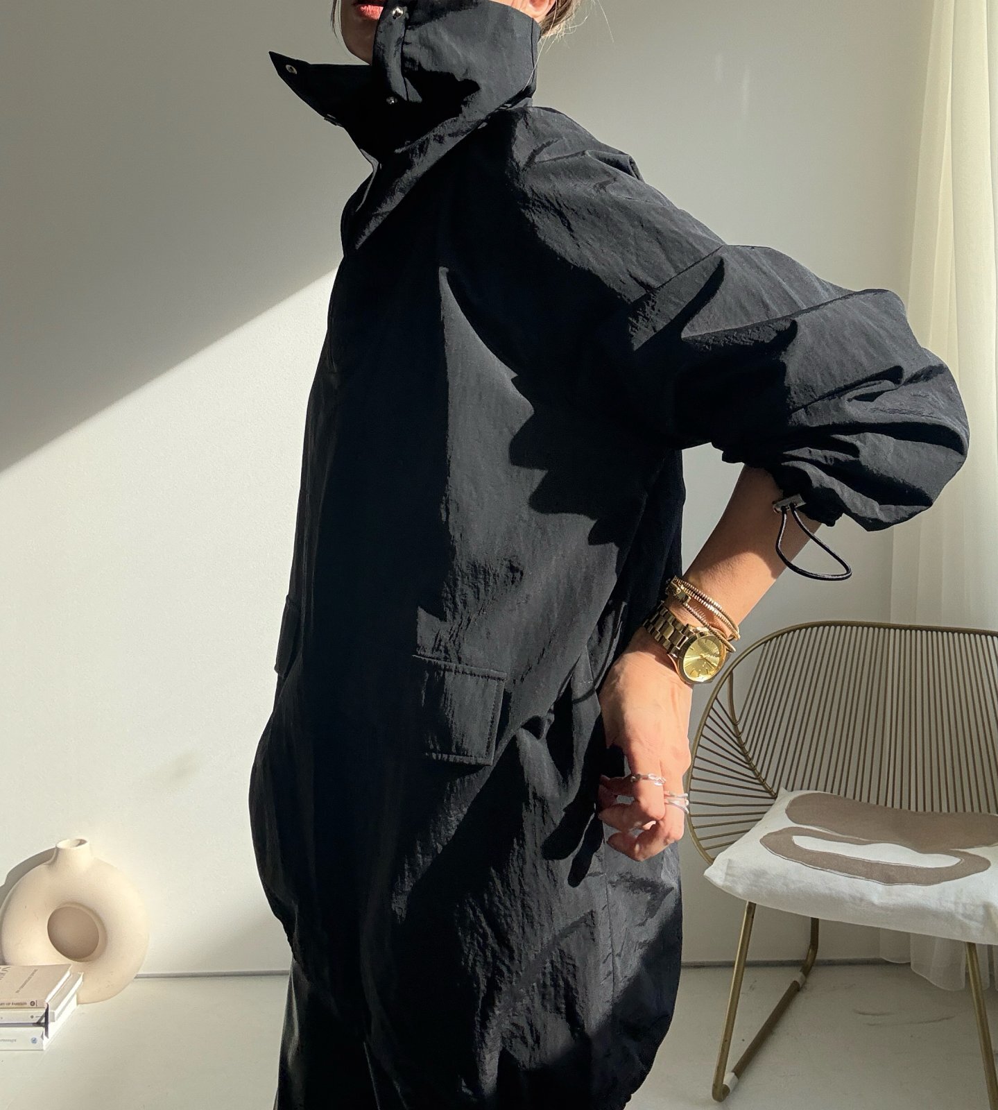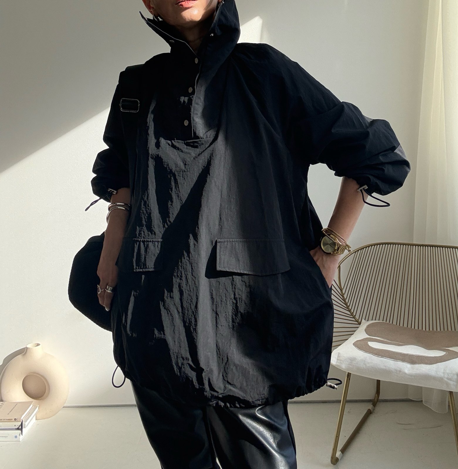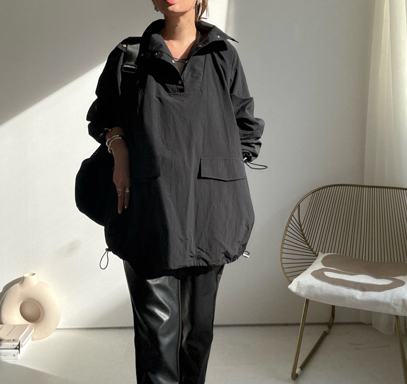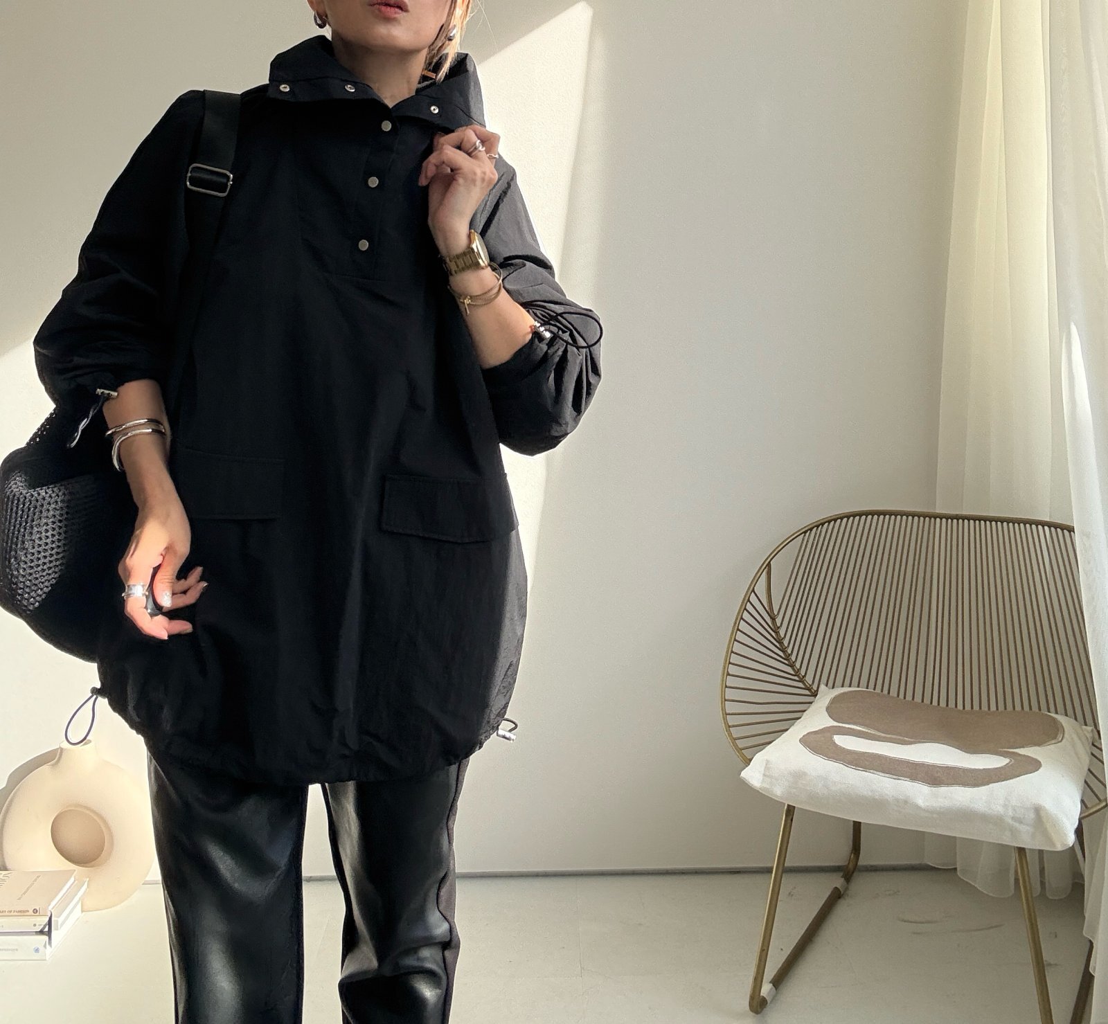 袖口と裾にはドロストコードが入っていて、絞って調整も可能