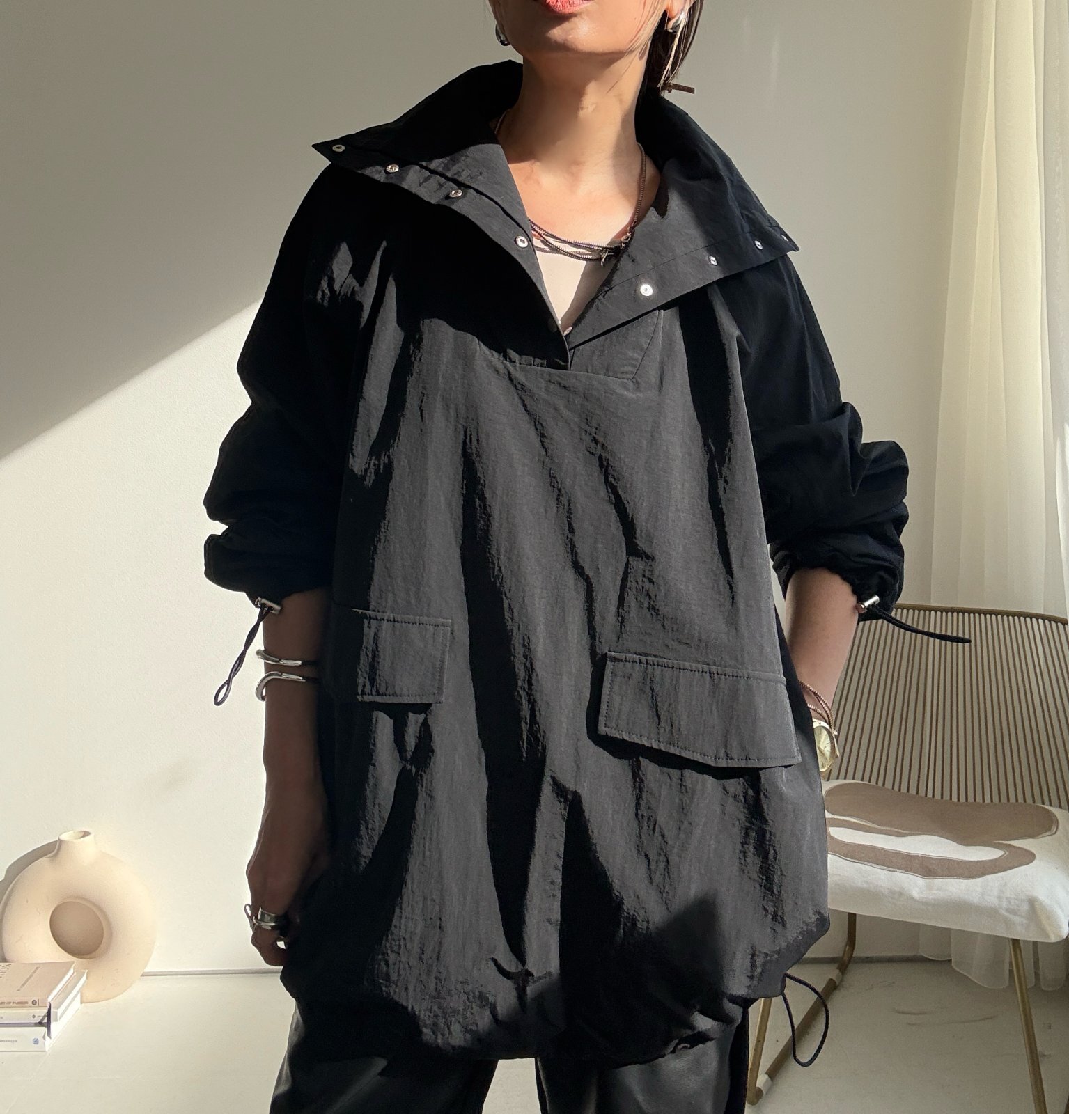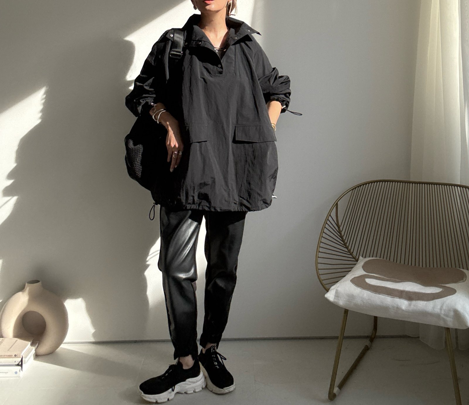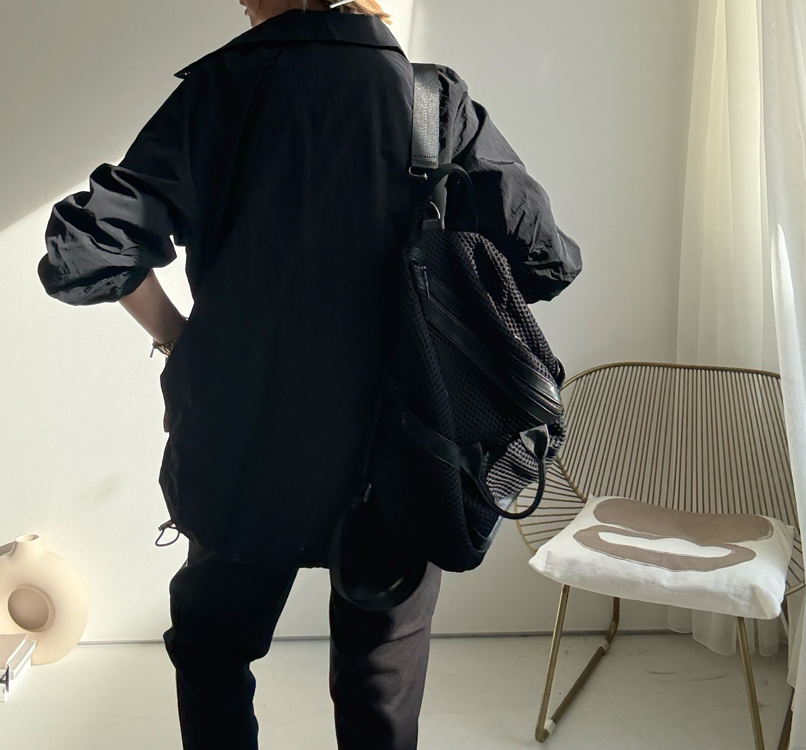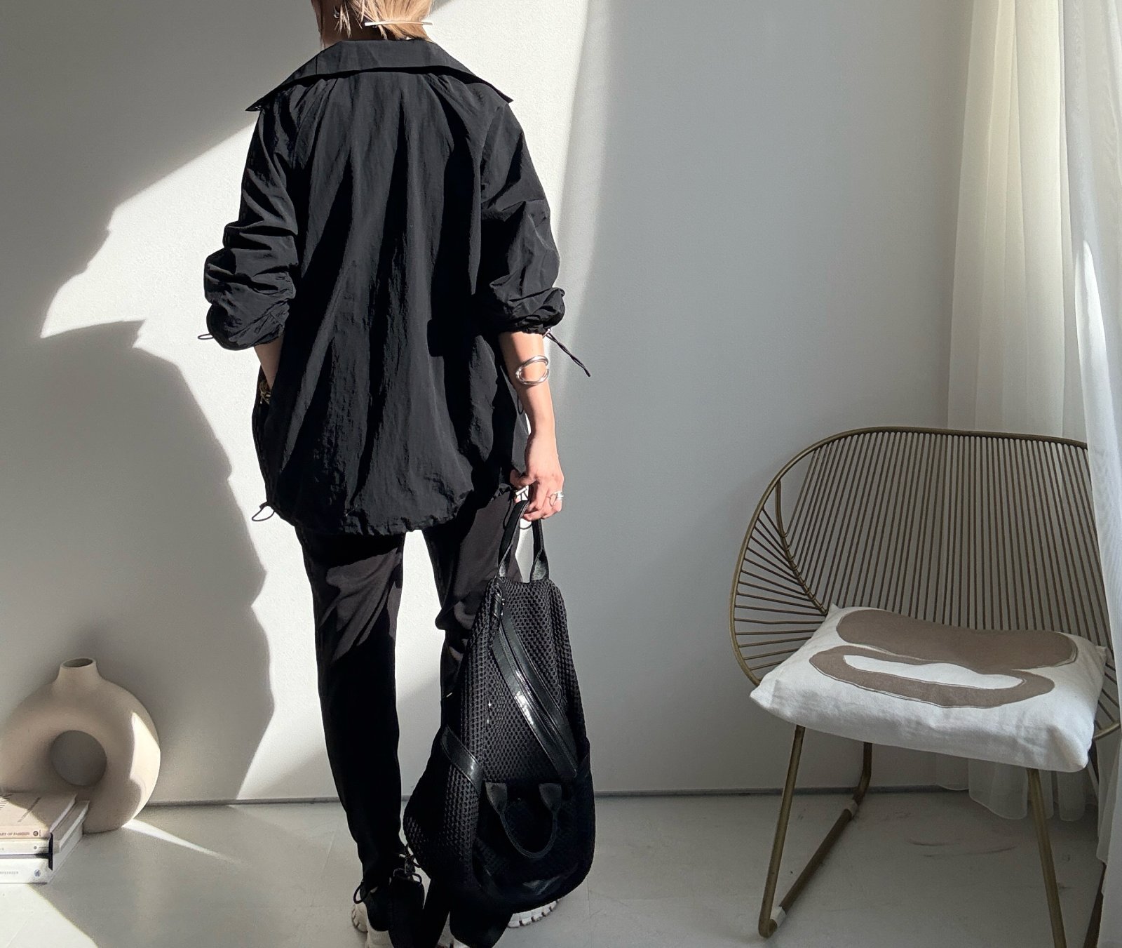 袖口と裾にはドロストコードが入っていて、絞って調整も可能