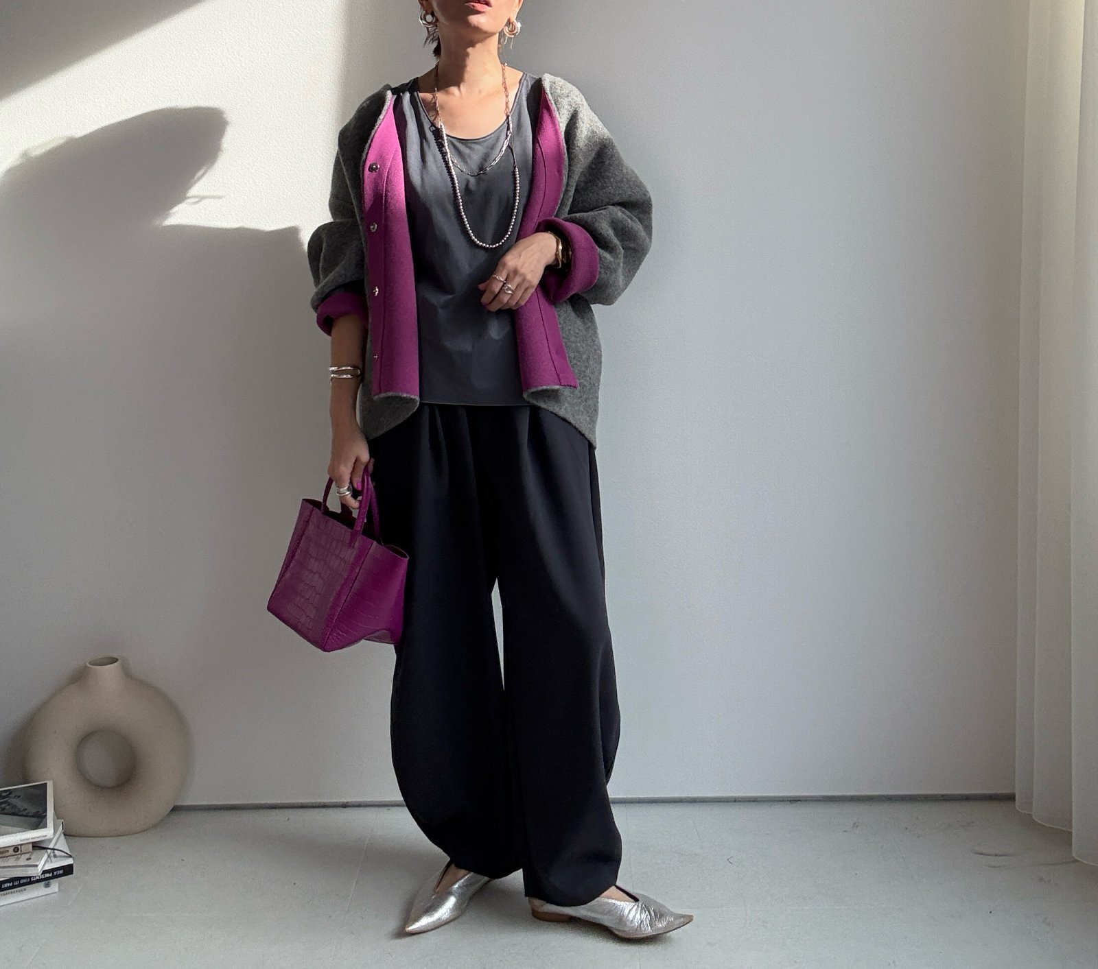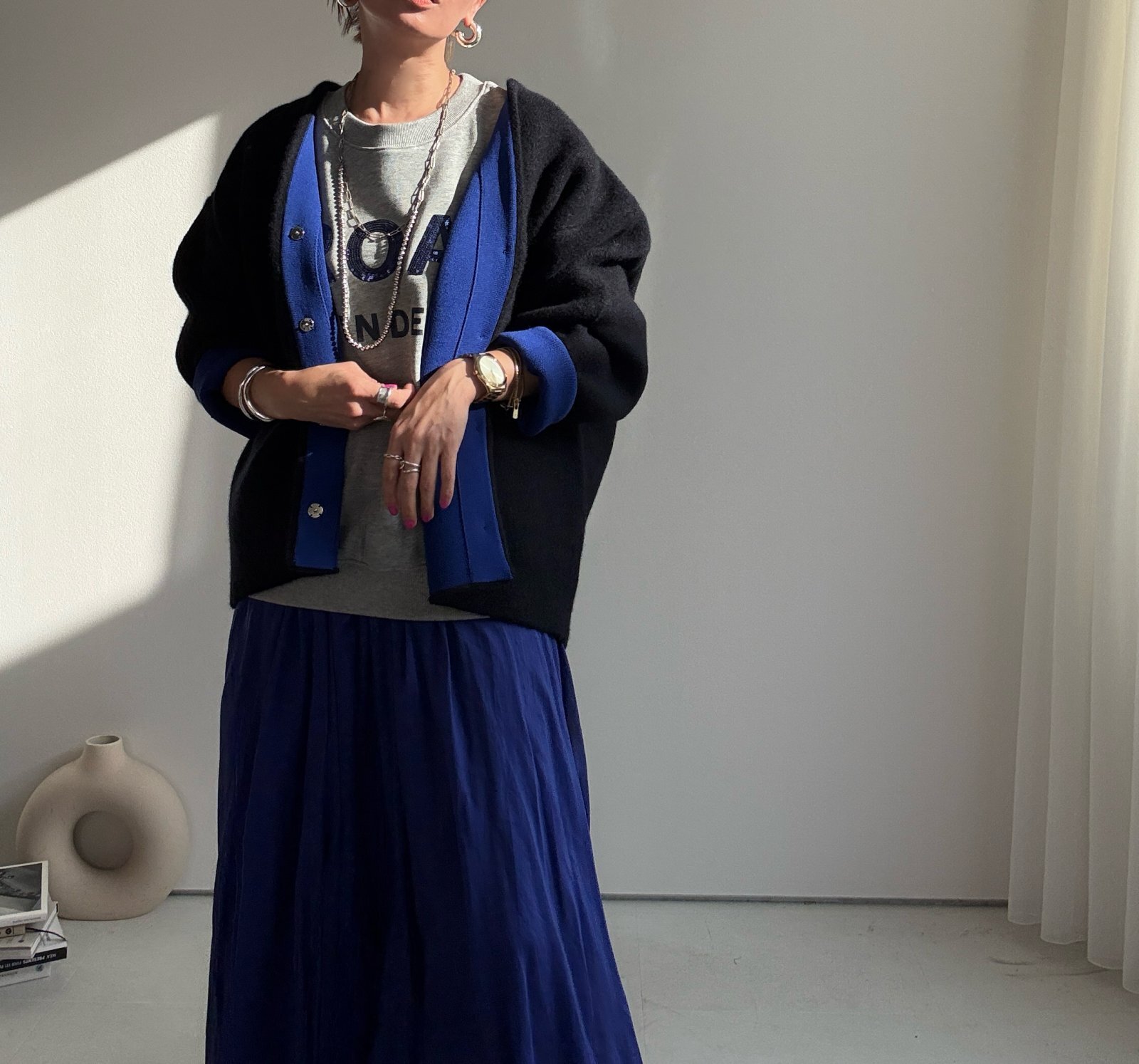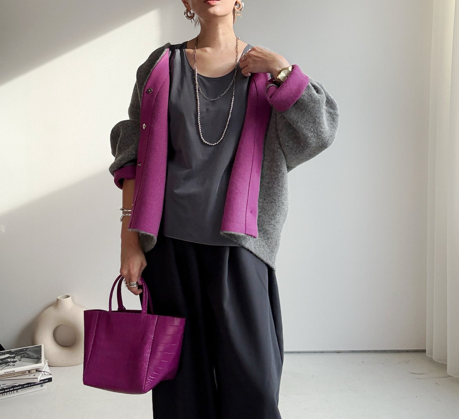 お袖先まで裏配色になっているから、袖を折り返すと配色が出てきます◎