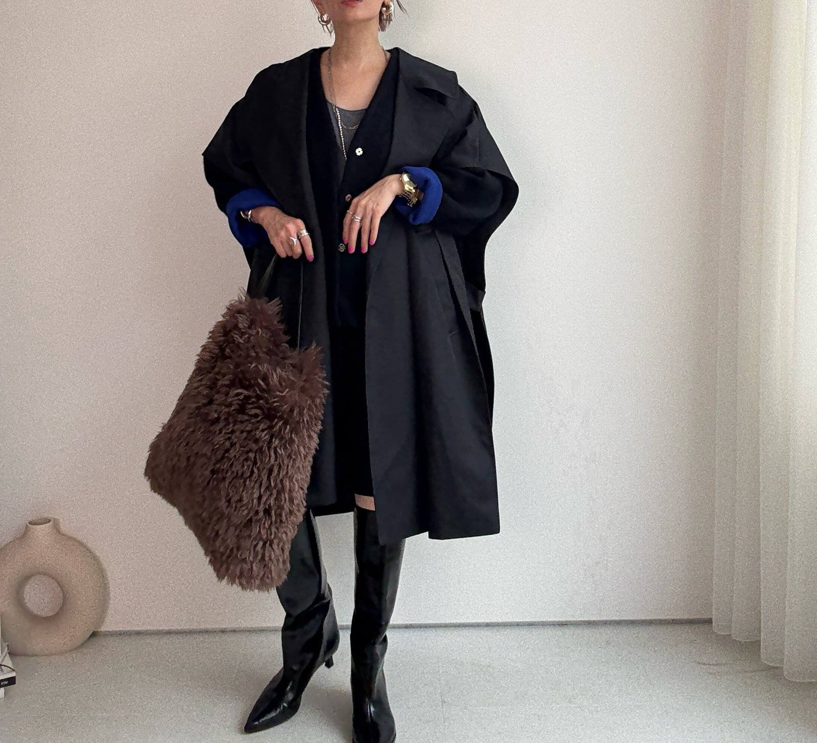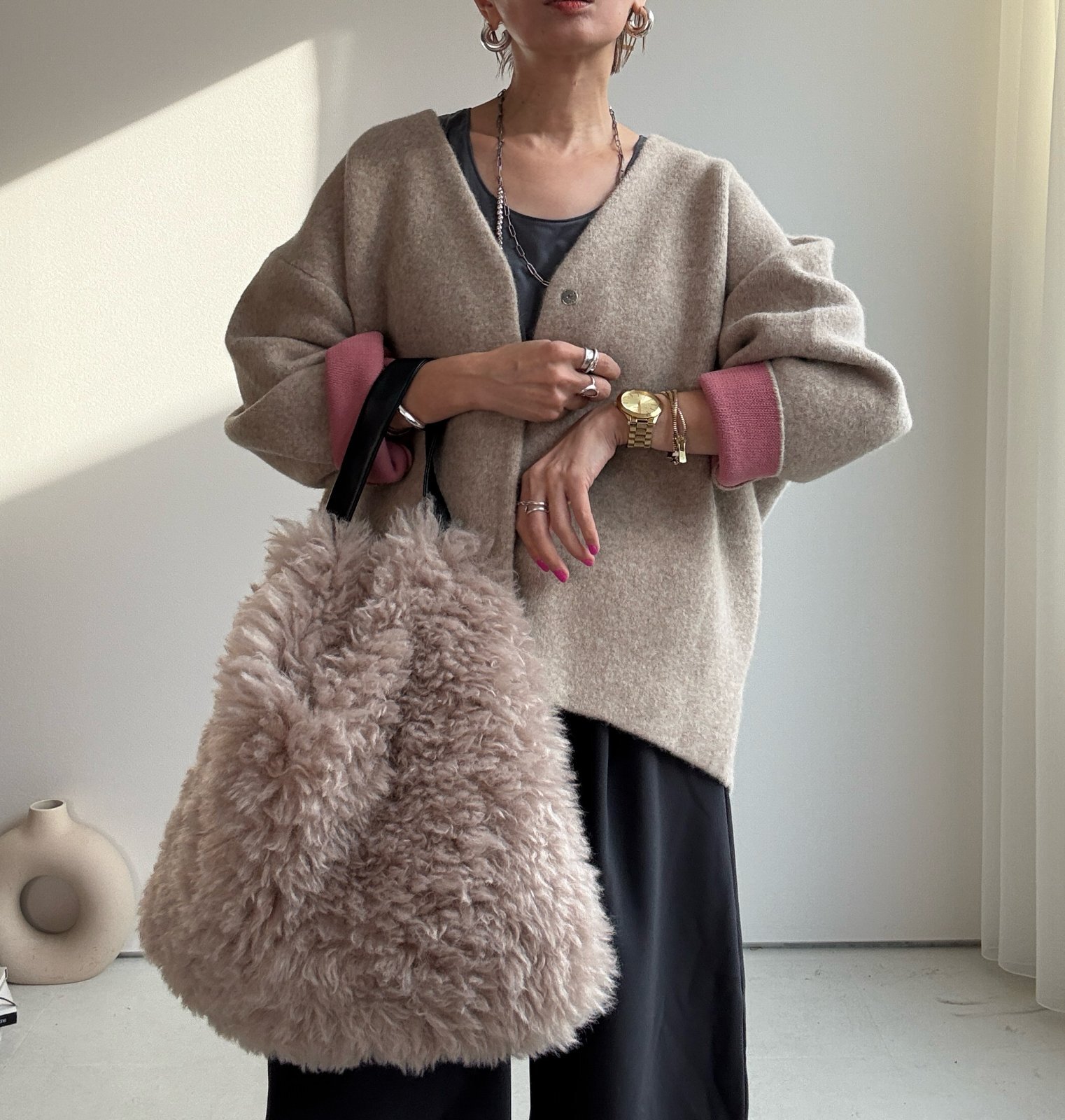ウール混のふんわり、もっちりとした肉厚素材で、ウールコート並みに温かいです◎