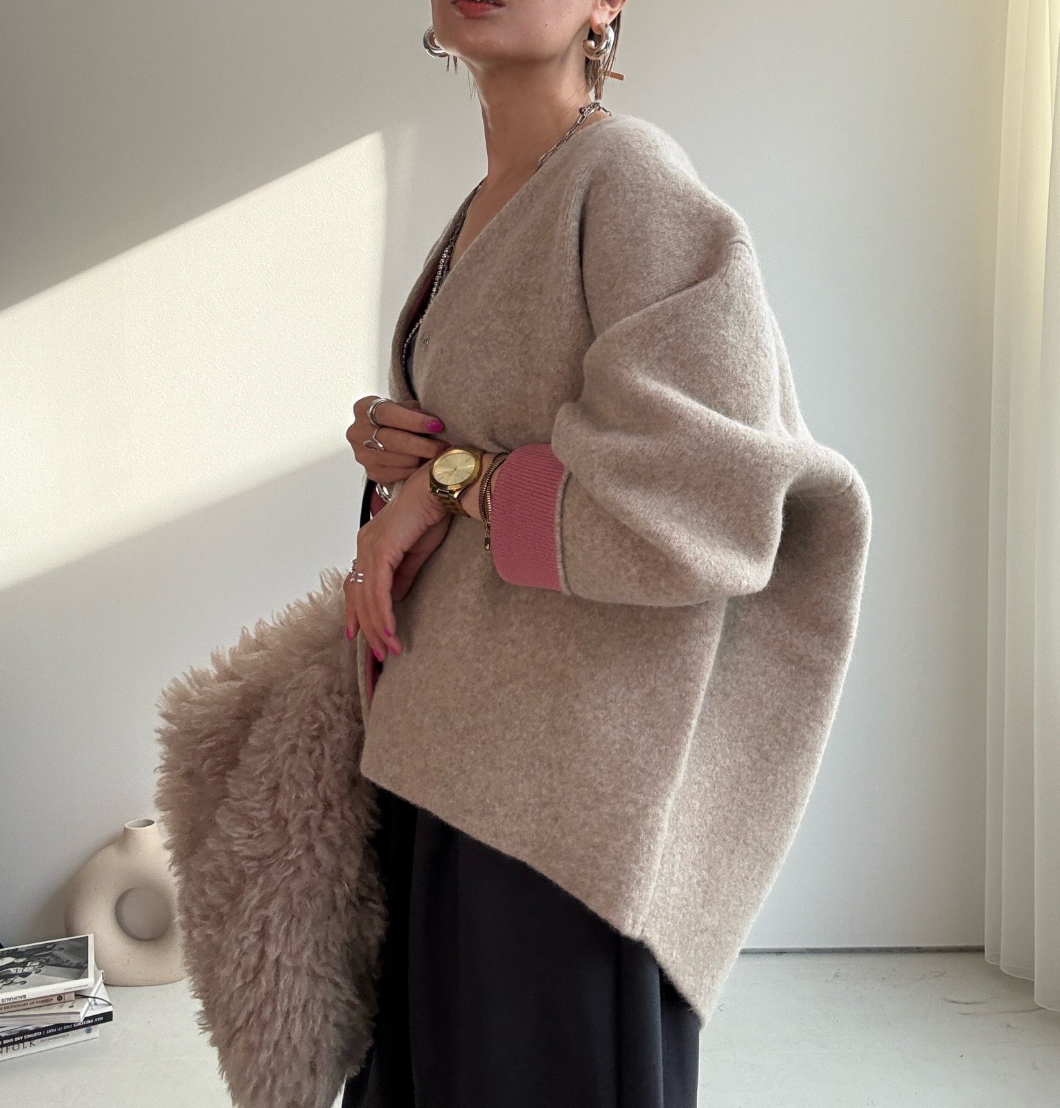 ◎SPECIAL PRICE◎期間限定●特別プライス●在庫限り●【10/2 LIVEご紹介アイテム】Wフェイス配色ウールカーデジャケット [25100207]