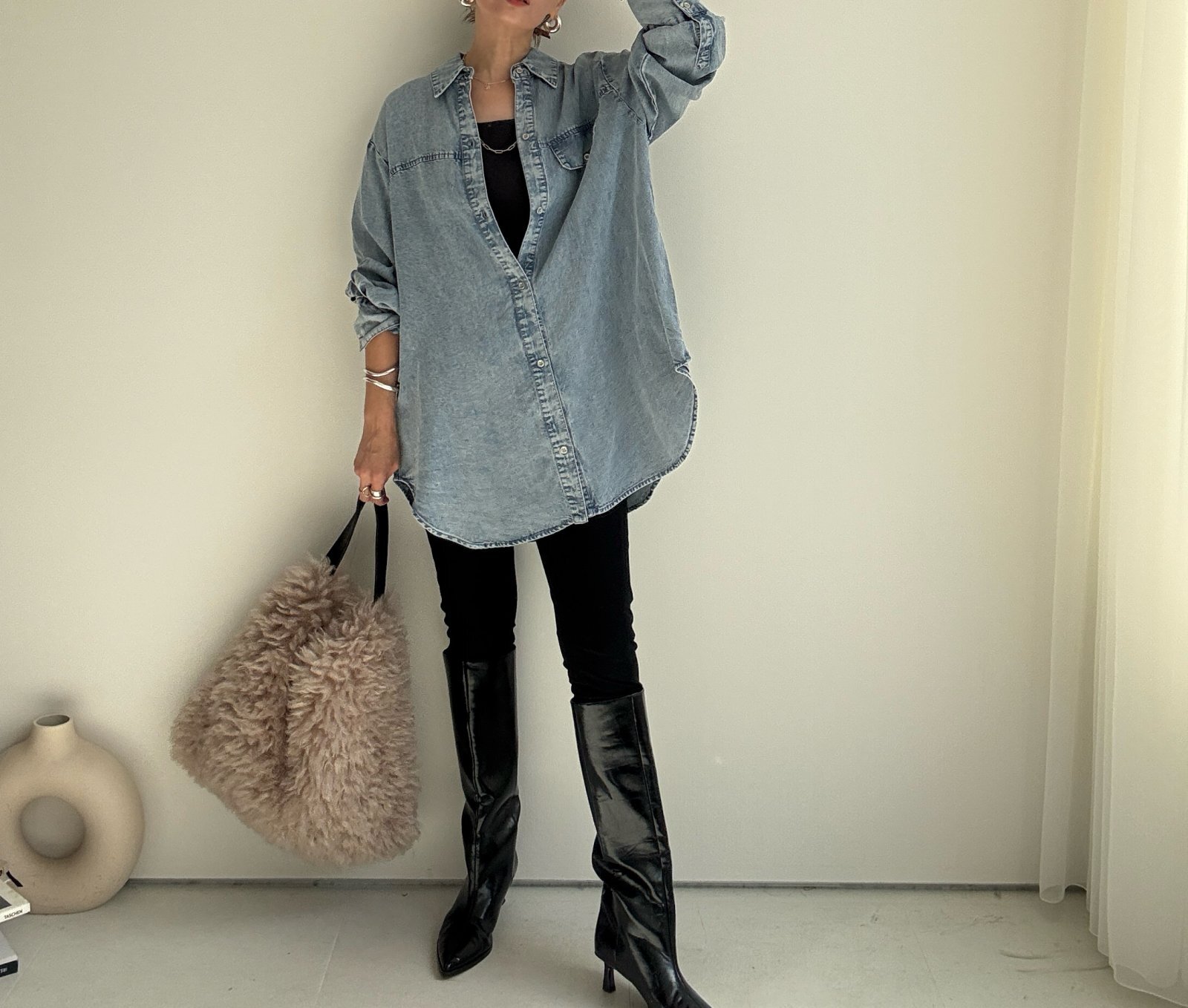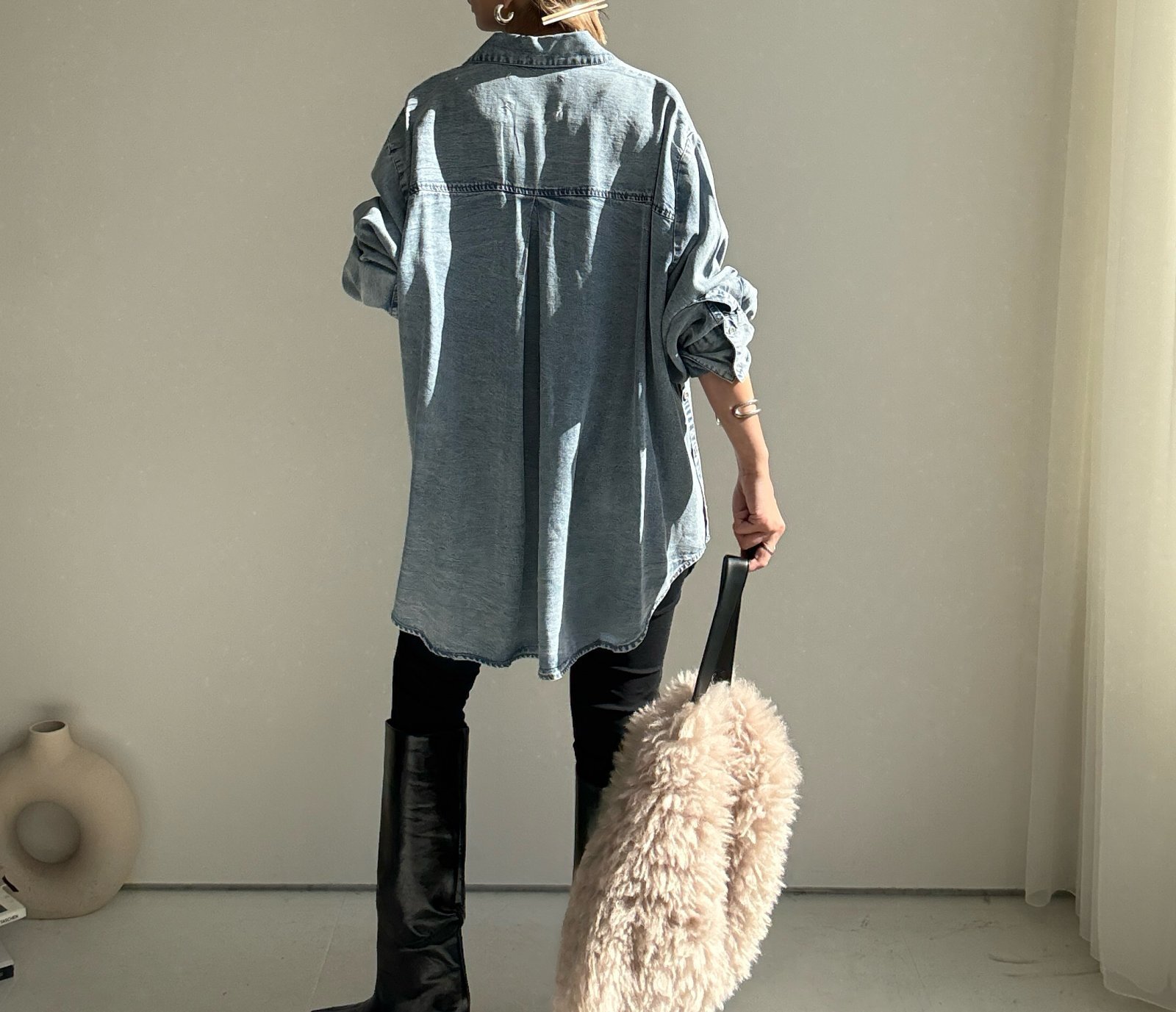 ●珍しいロング丈でレギンスやスキニー合わせにも◎【10/14 LIVEアイテム】テンセルデニムロングシャツ [25101404]