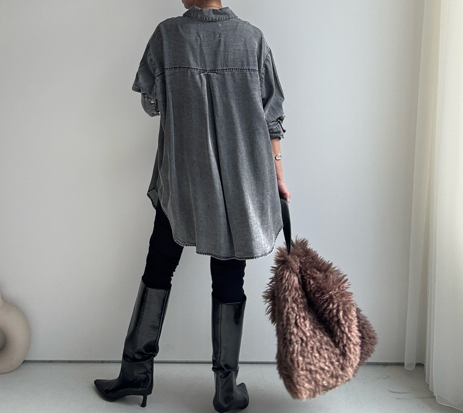 ●珍しいロング丈でレギンスやスキニー合わせにも◎【10/14 LIVEアイテム】テンセルデニムロングシャツ