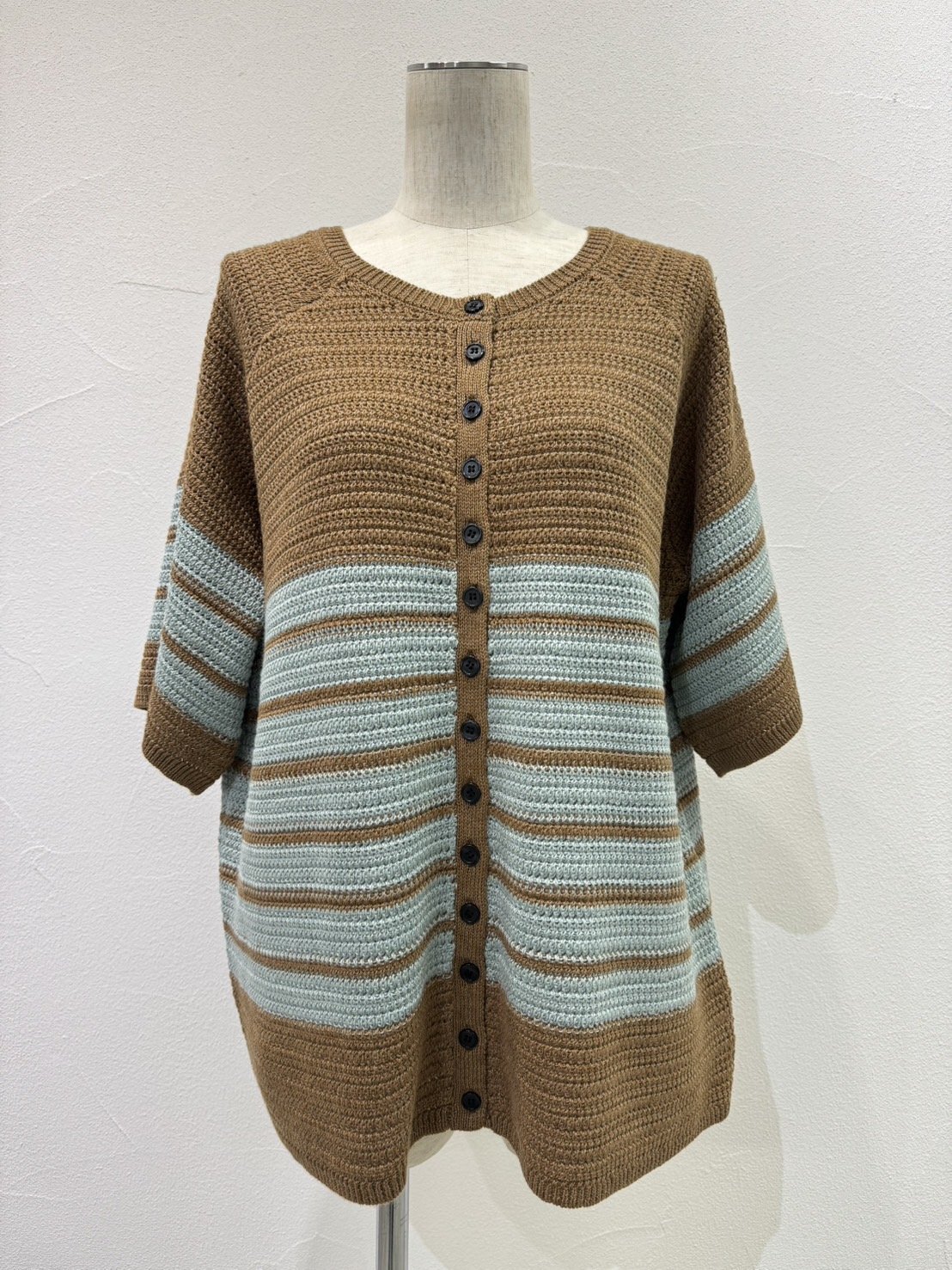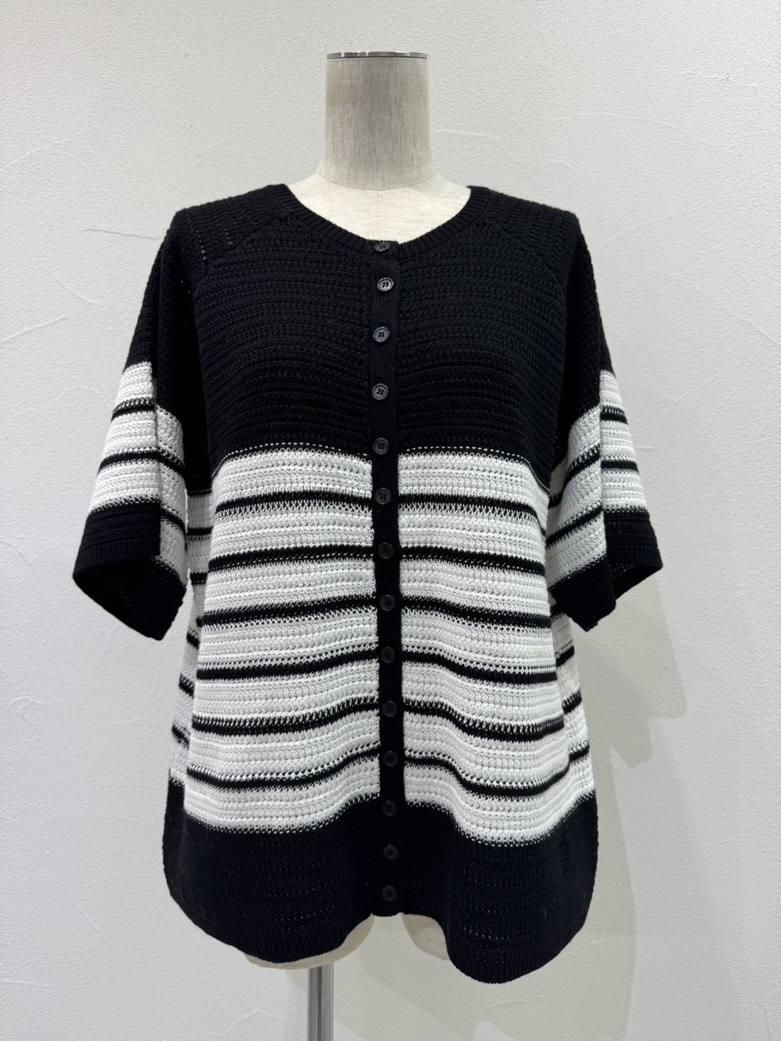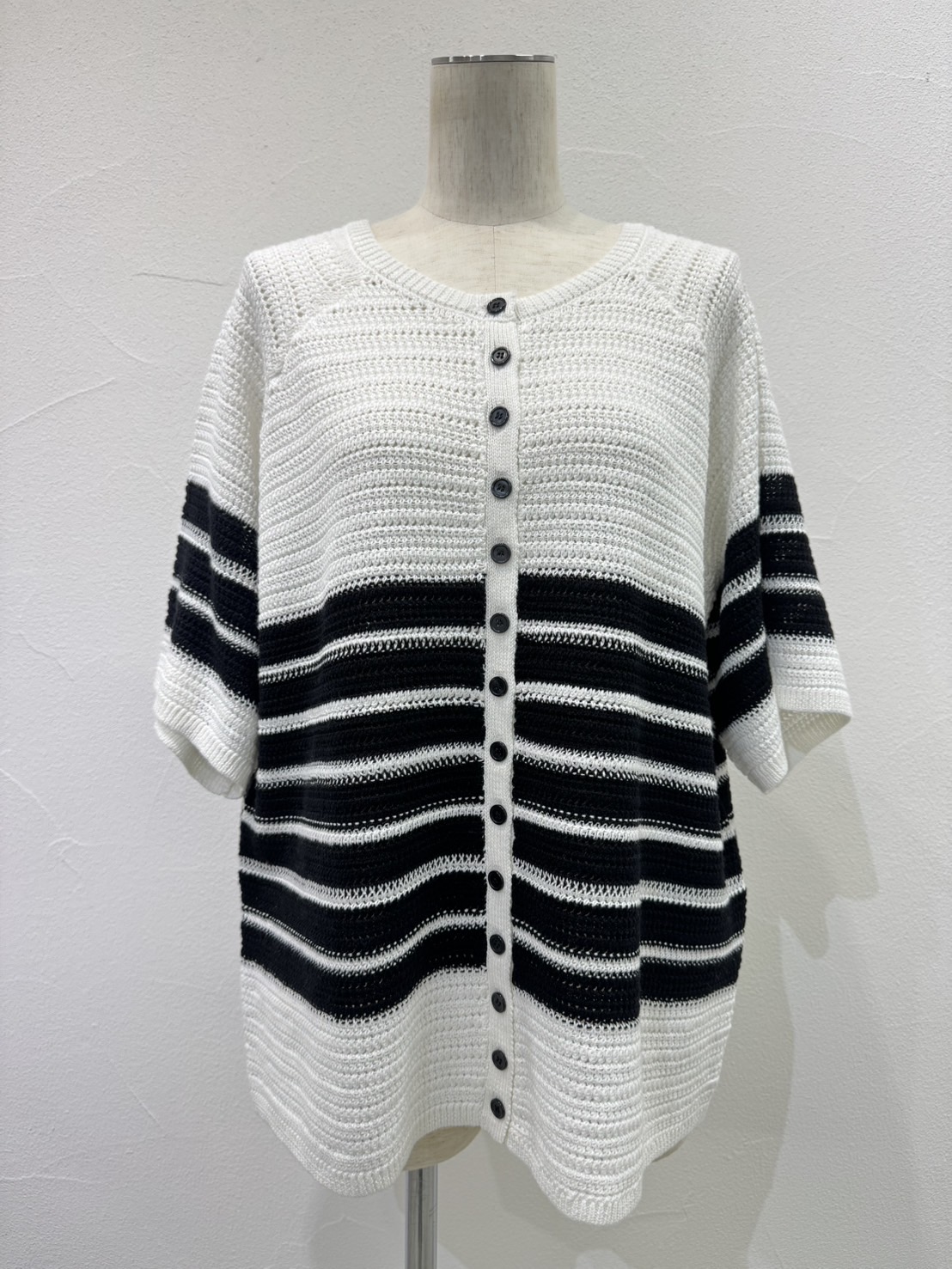 ●CYAN TOKYO●期間限定●ご予約10倍ポイント対象●【10/17 LIVEご紹介アイテム】透かしボーダーハーフスリーブカーデ(予約2) [25101702]