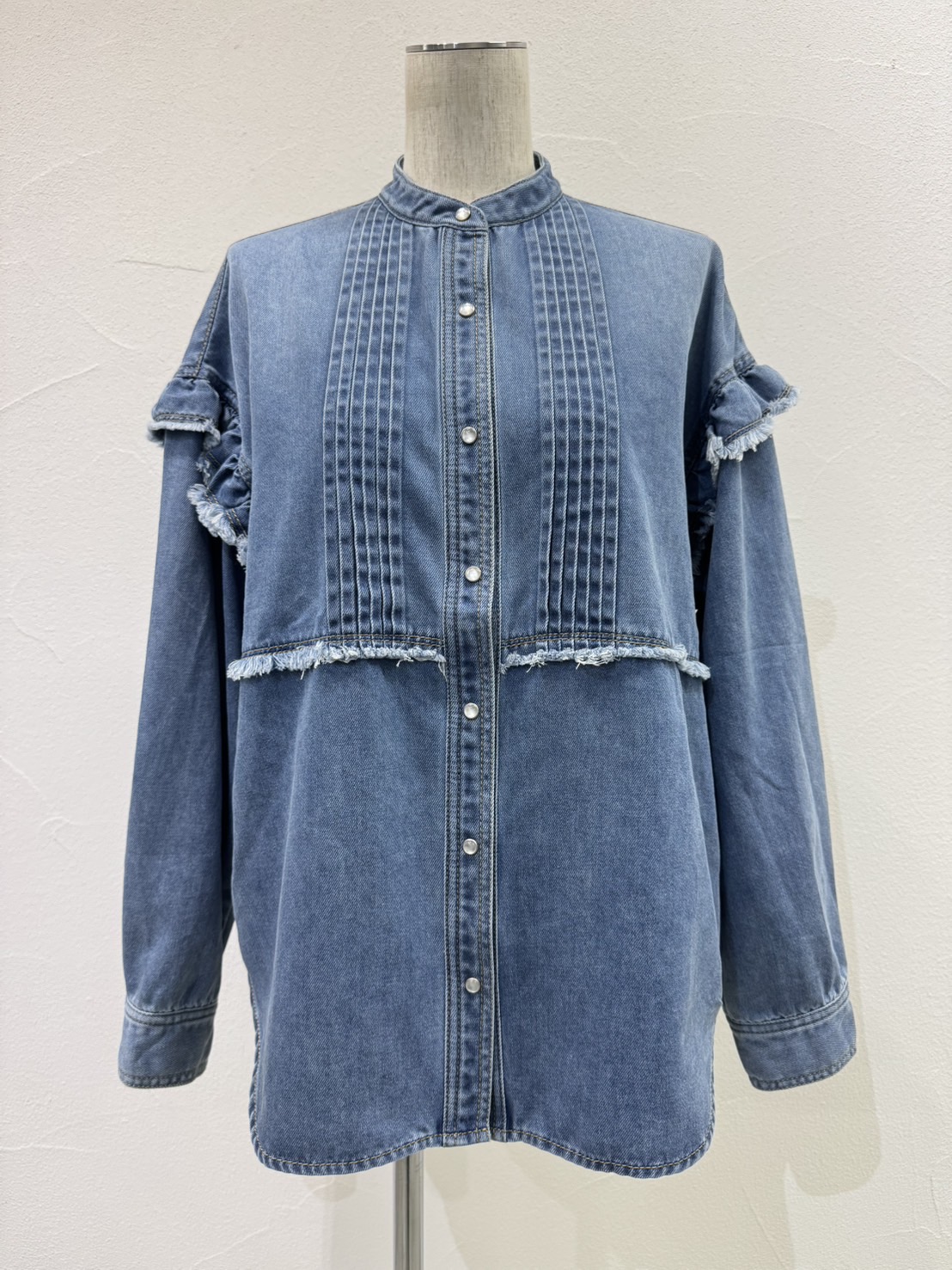 ●CYAN TOKYO●期間限定●ご予約10倍ポイント対象●【10/17 LIVEご紹介アイテム】ピンタックフリルウエスタンシャツ(予約/2-3) [25101708]