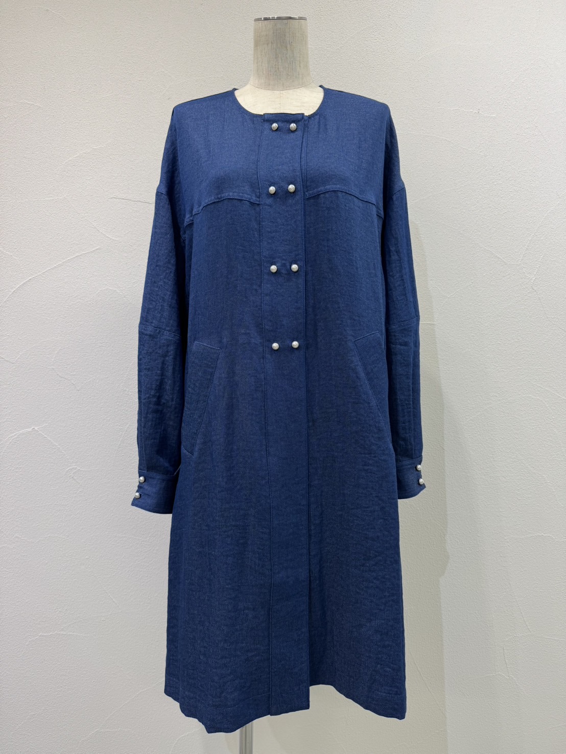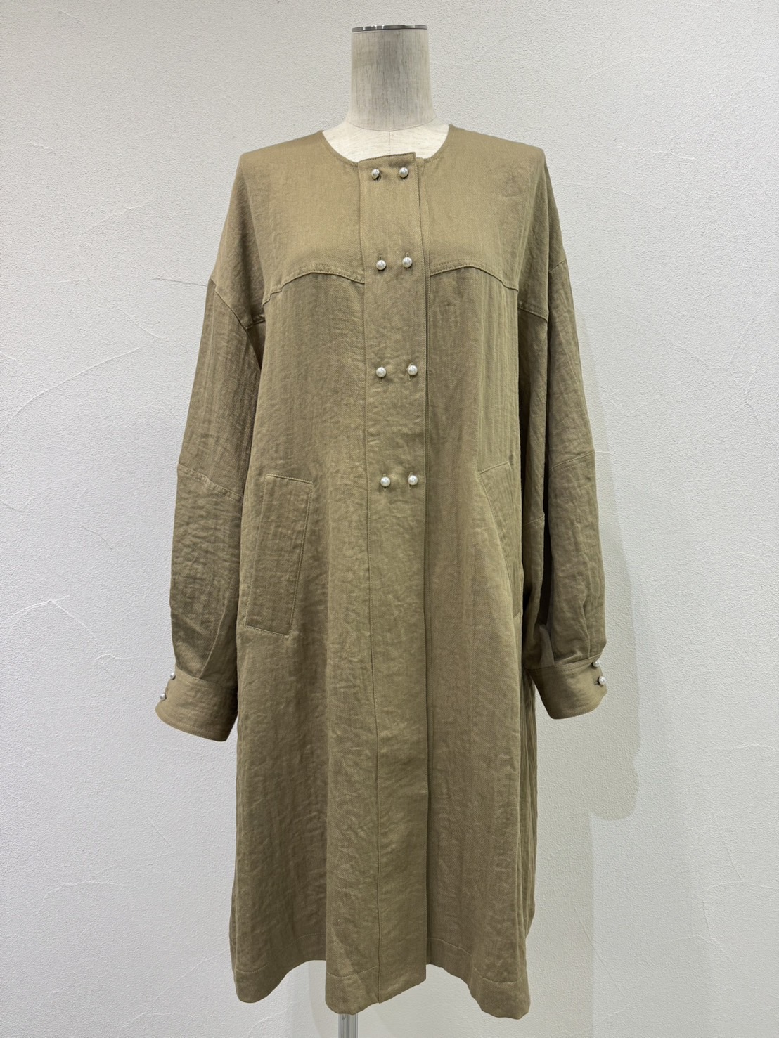 ●CYAN TOKYO●期間限定●ご予約10倍ポイント対象●【10/17 LIVEご紹介アイテム】パールボタンミリタリーリネンコート(予約/2-3) [25101712]