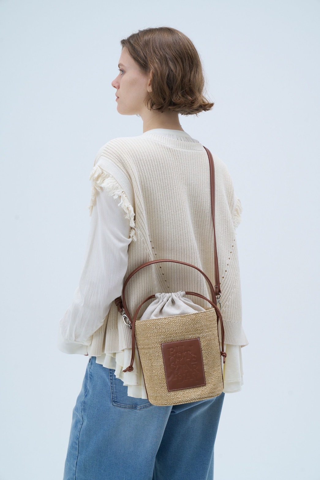 ●期間限定●数量限定●ご予約5倍ポイント対象●【11/7 LIVEご紹介アイテム】本革パッチラフィアバケツバッグ(予約/2-3) [25110702]