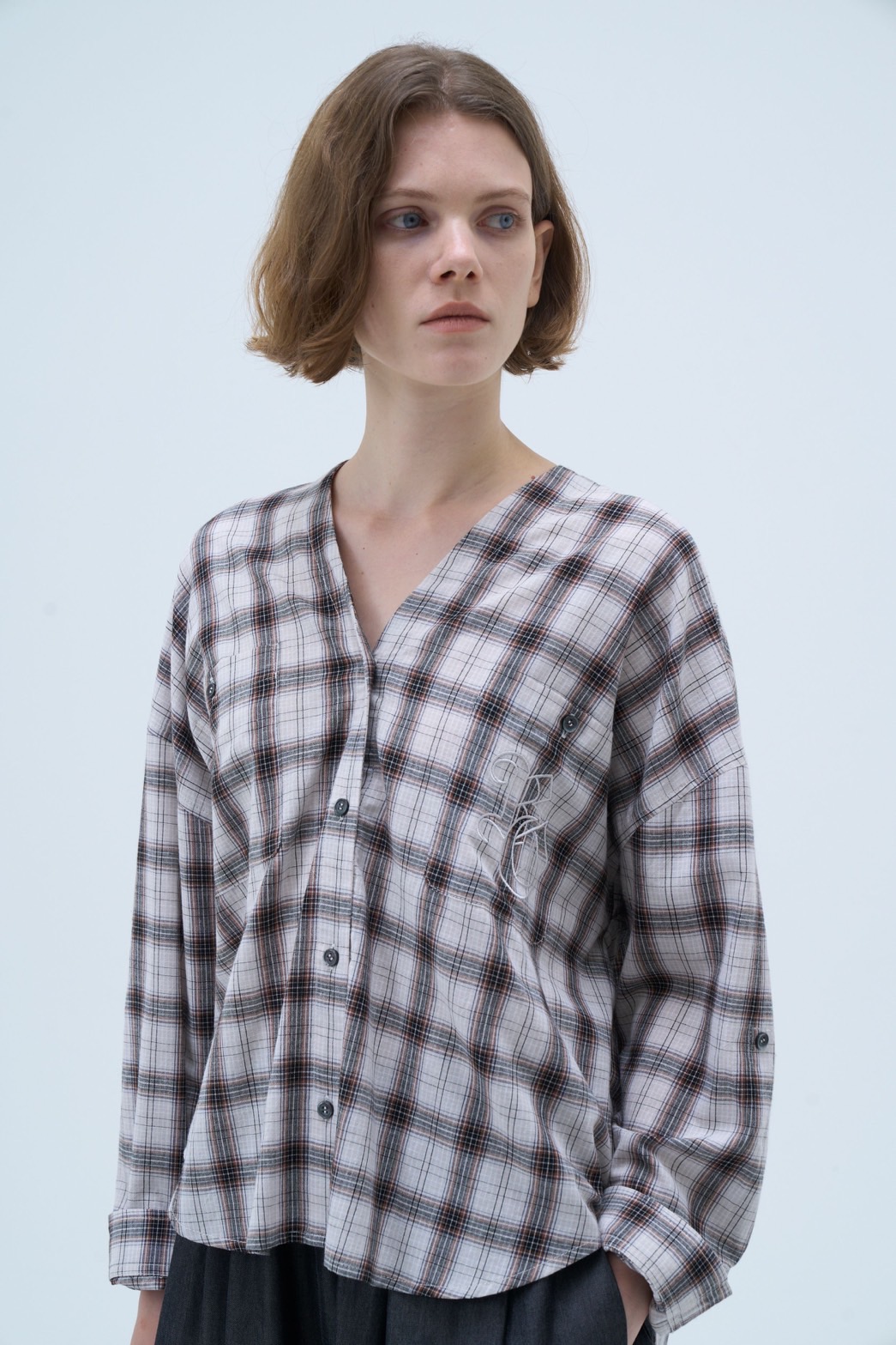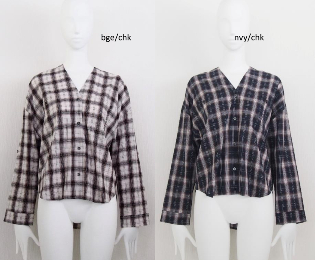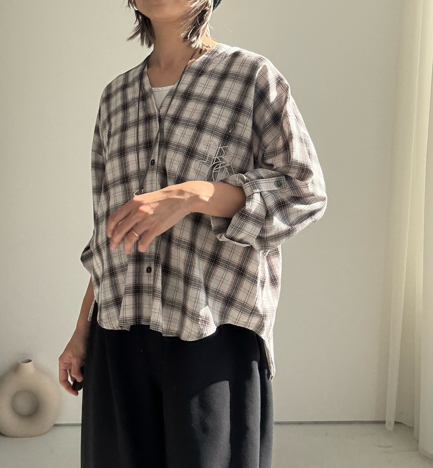 ●期間限定●数量限定●ご予約5倍ポイント対象●【11/7 LIVEご紹介アイテム】刺繍ロゴノーカラーチェックシャツ(予約/2-3) [25110706]