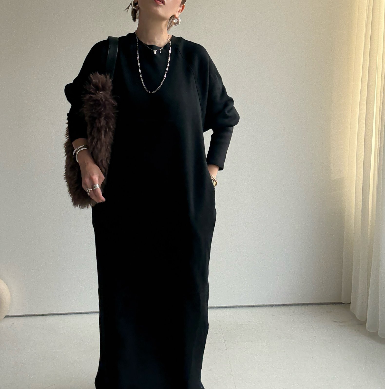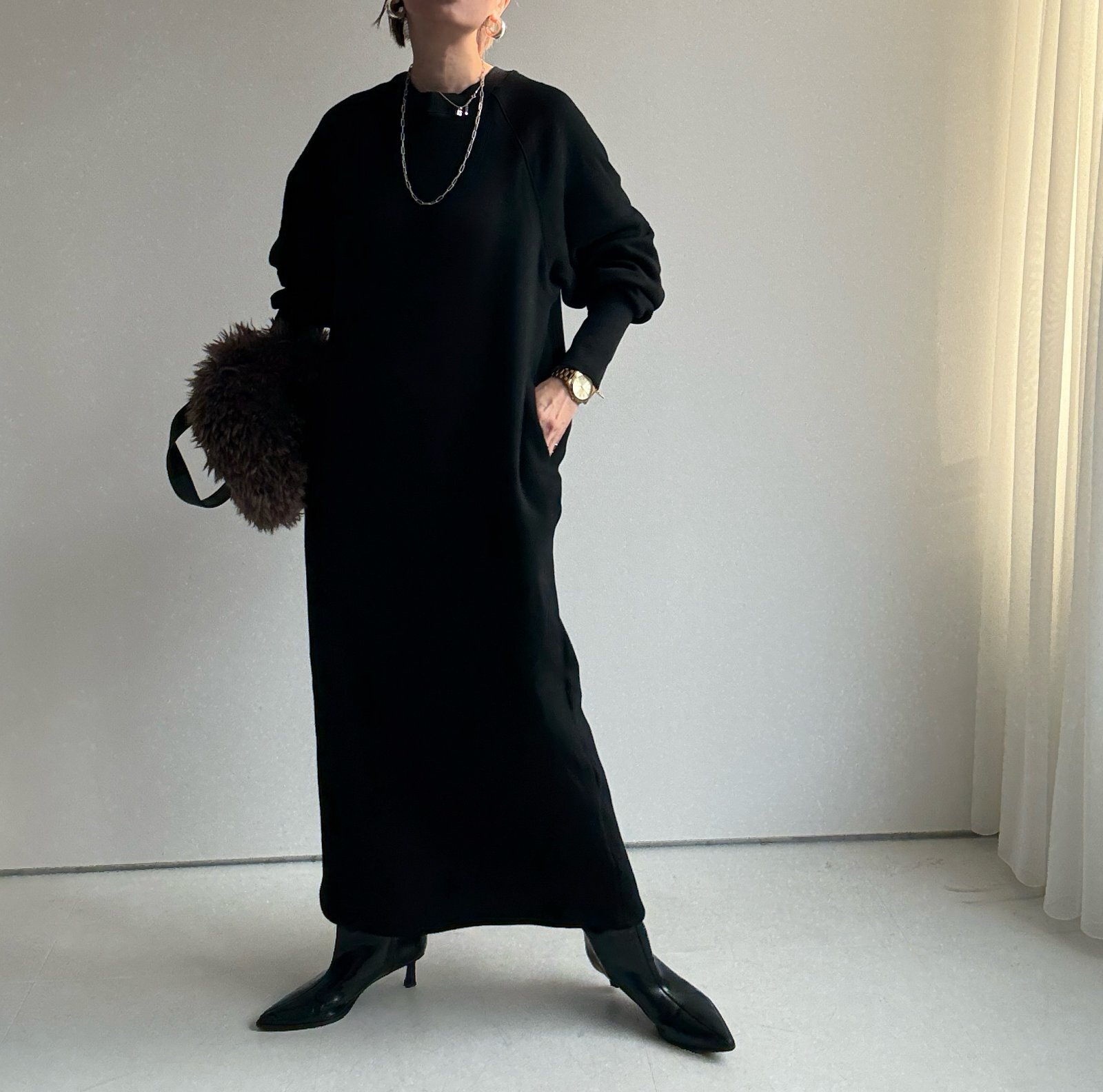 ●数量限定●裏毛布シリーズ●【11/11 LIVEアイテム】裏毛布リブ袖ワンピ [25111107]