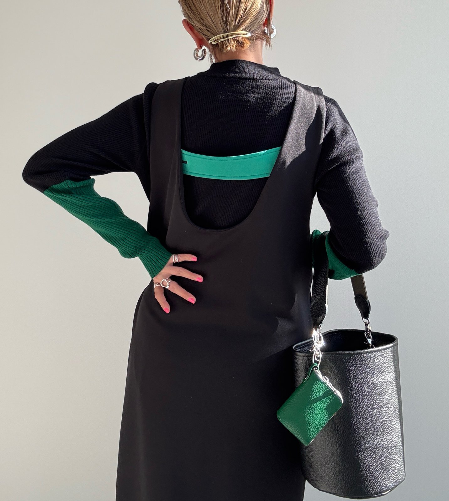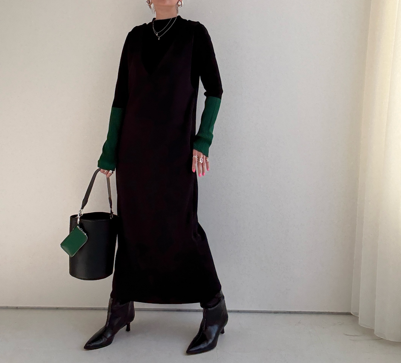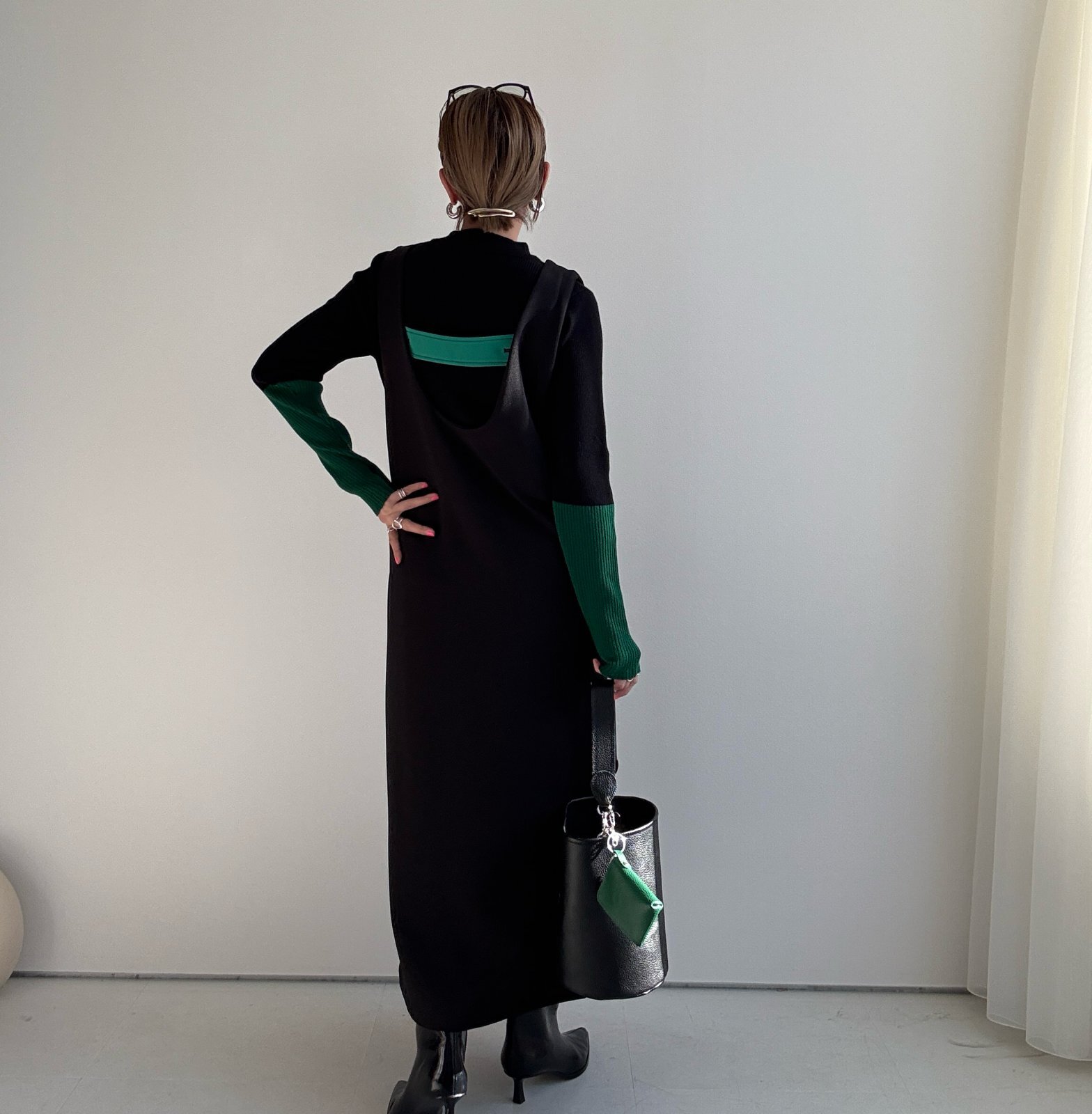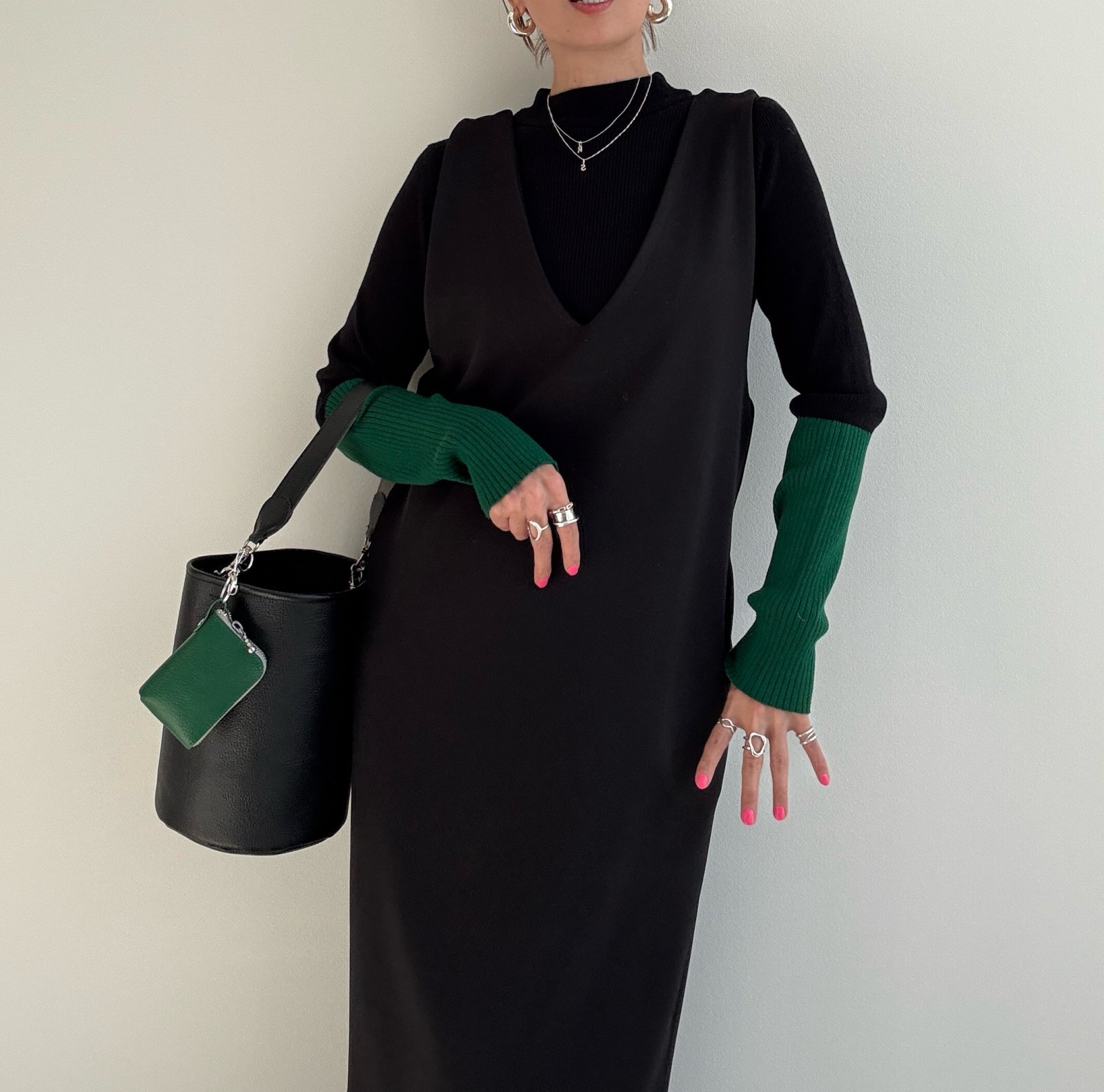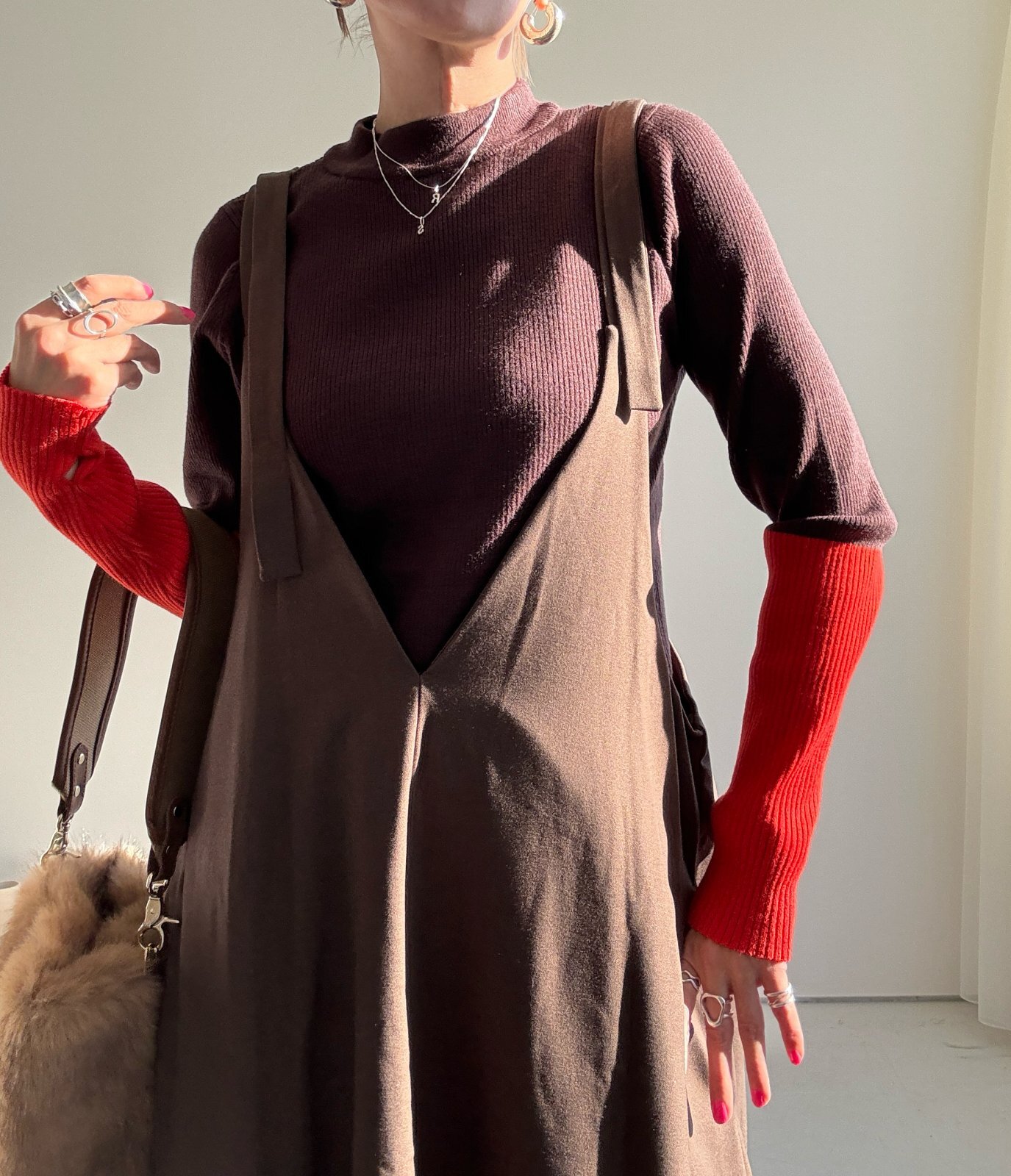 ●びよーんと伸びるリブニット【12/9 LIVEアイテム】配色アームウォーマーリブニット