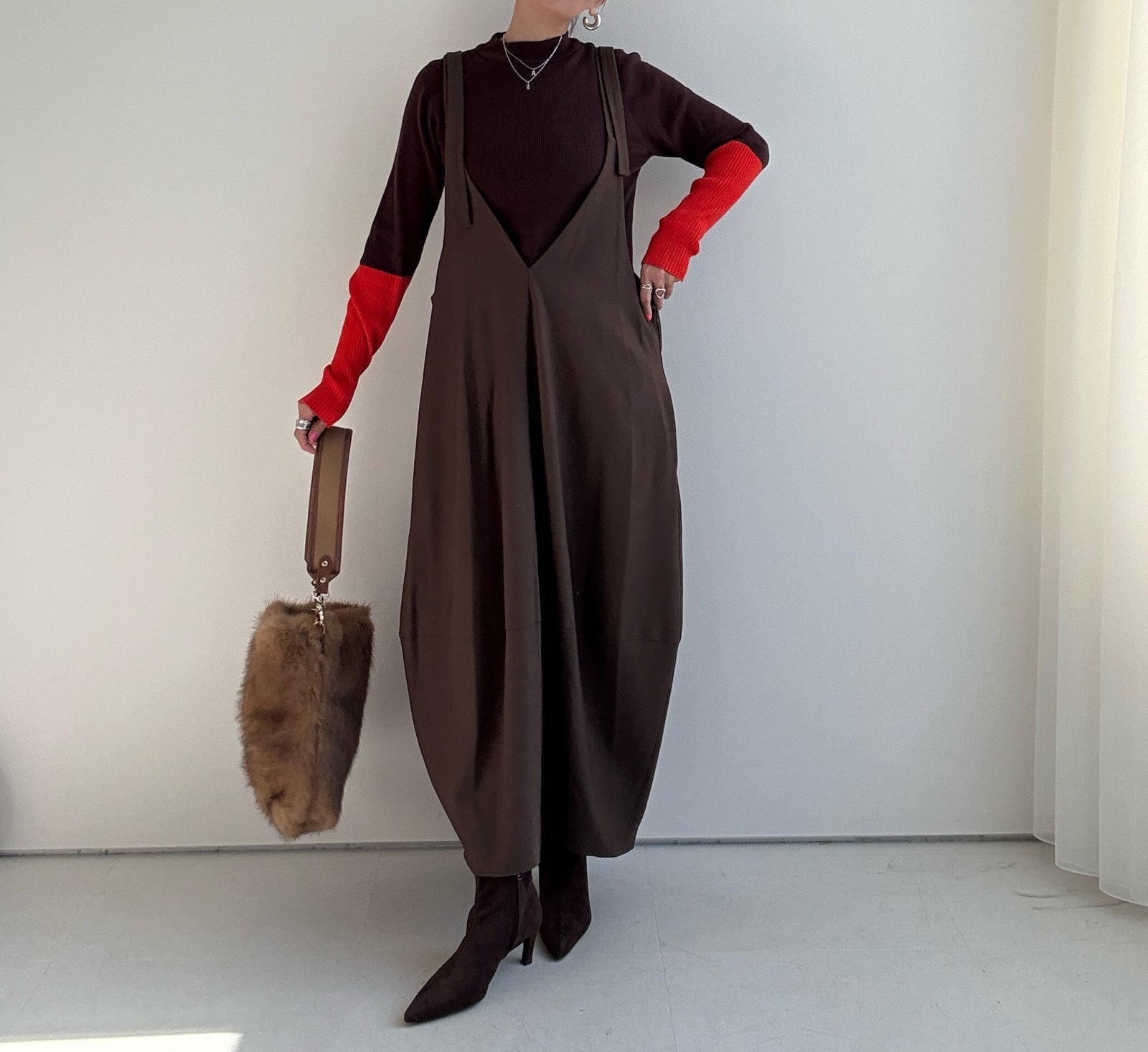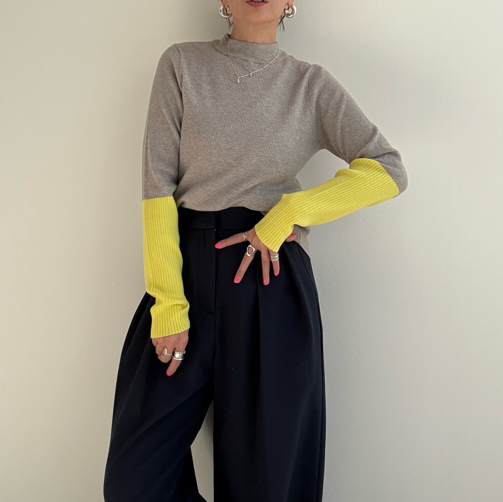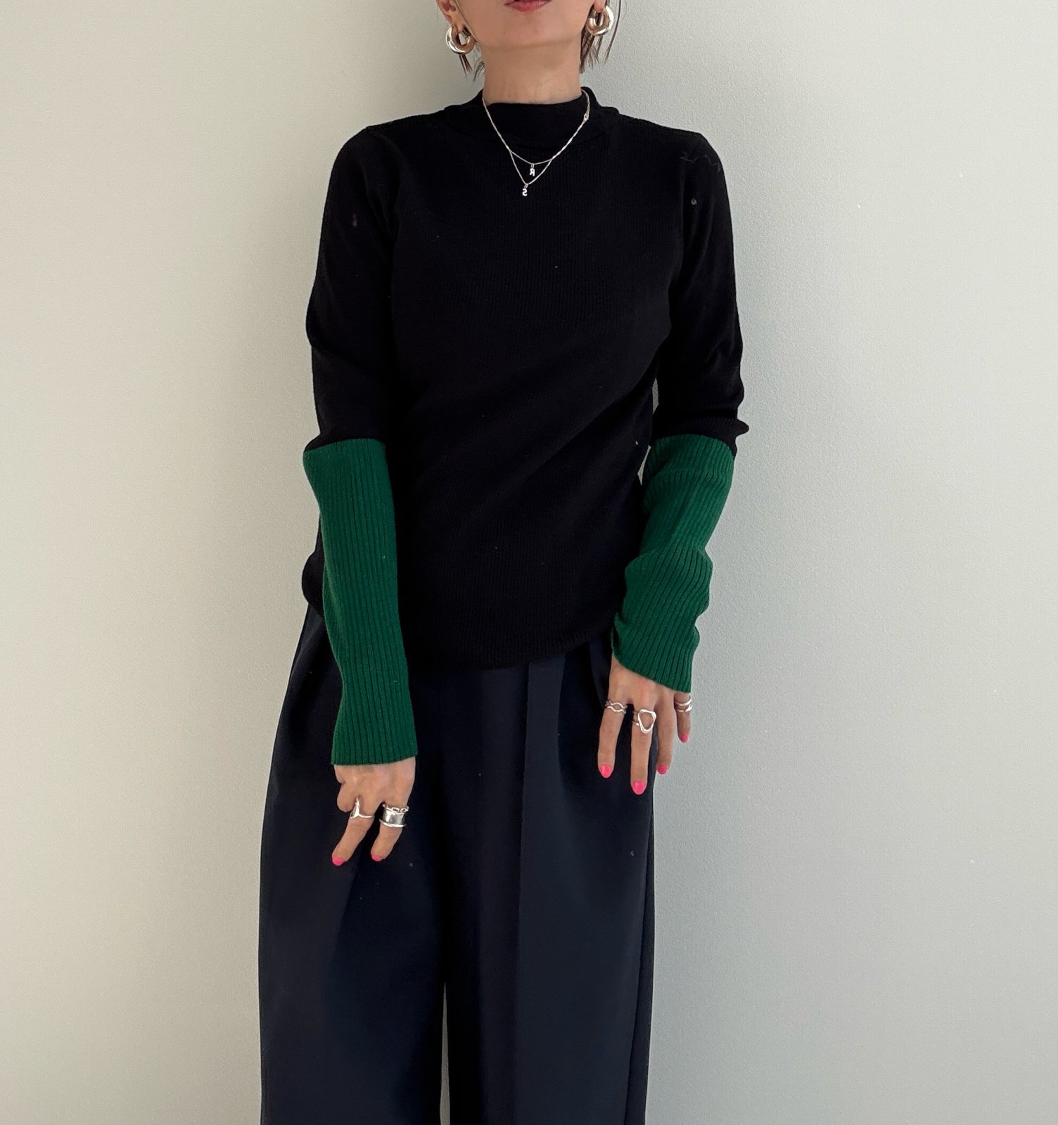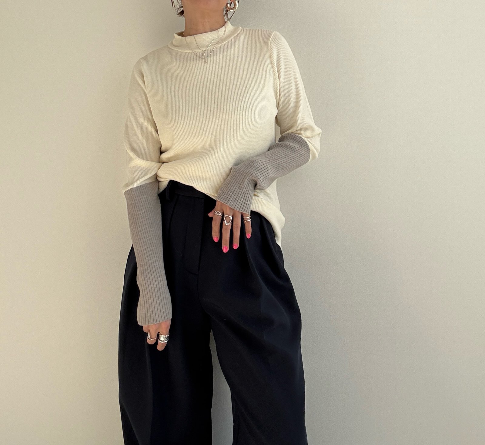 ●びよーんと伸びるリブニット【12/9 LIVEアイテム】配色アームウォーマーリブニット [25120902]