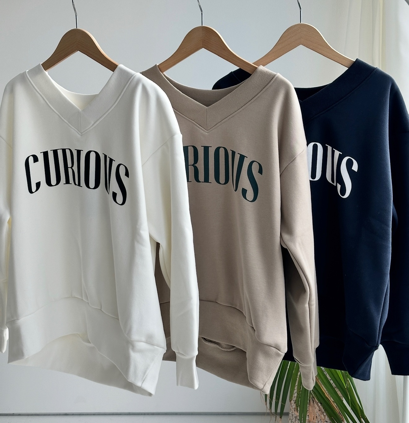 ●SALE●【12/25 LIVEアイテム】裏ボアであったか●Vネック裏ボアロゴスエット(ホワイト) [25122506]