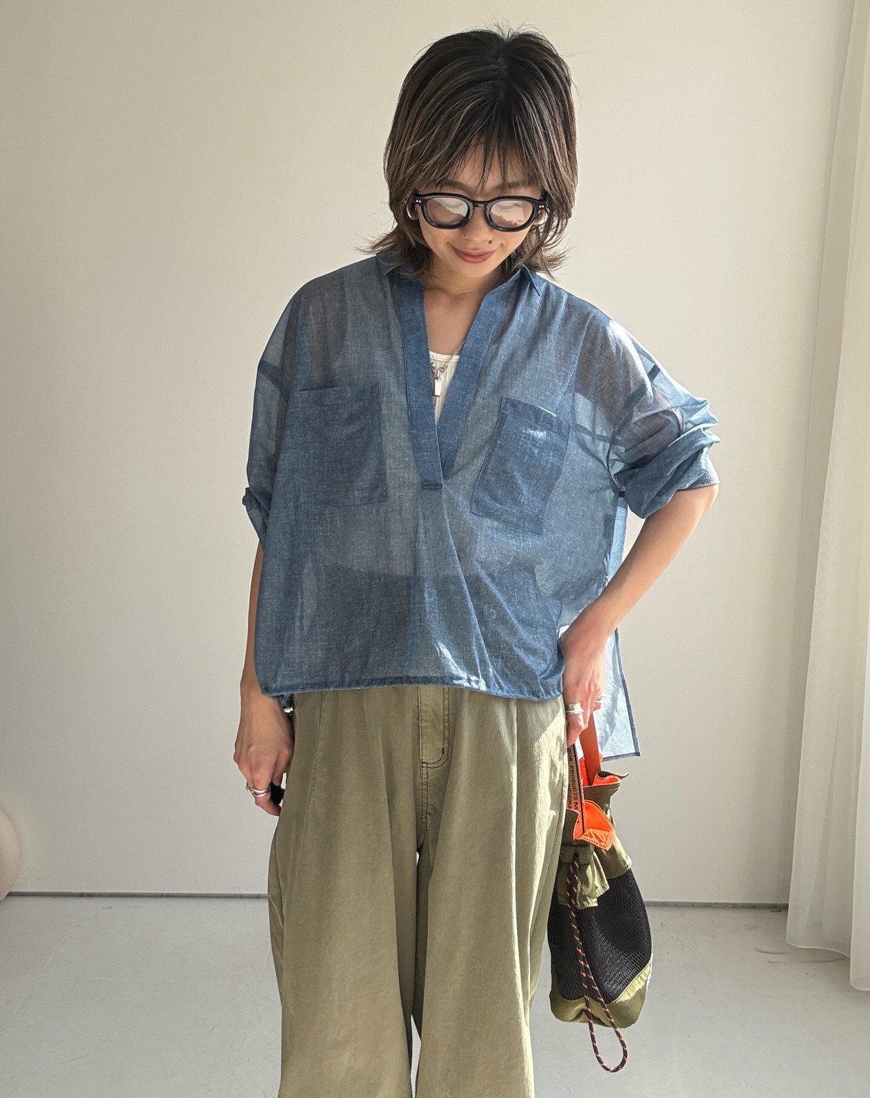 ●数量限定/メーカー在庫限り●【2/14LIVE】シアーデニム前後差スキッパーシャツ