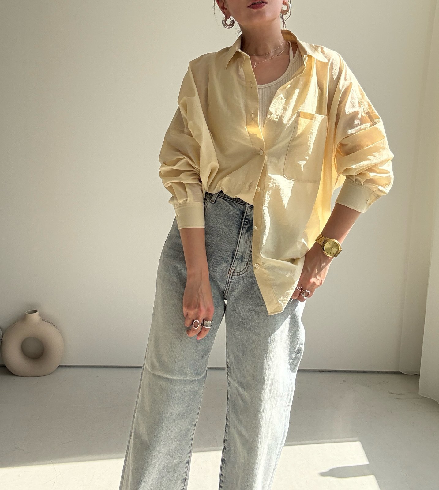 ●身幅ゆったり【3/9 LIVEアイテム】●スプリングカラーシアーシャツ