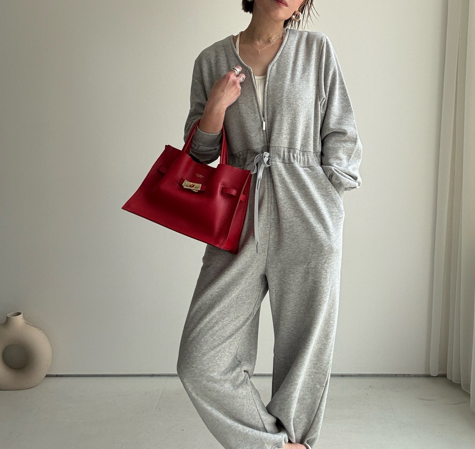 ●メーカー在庫限り【3/16 LIVEアイテム】●Vネックジップスエットジャンプスーツ(メーカー確認後確保) [26031501]