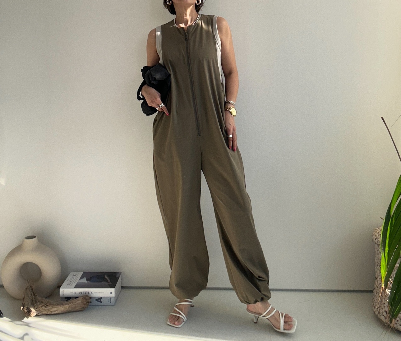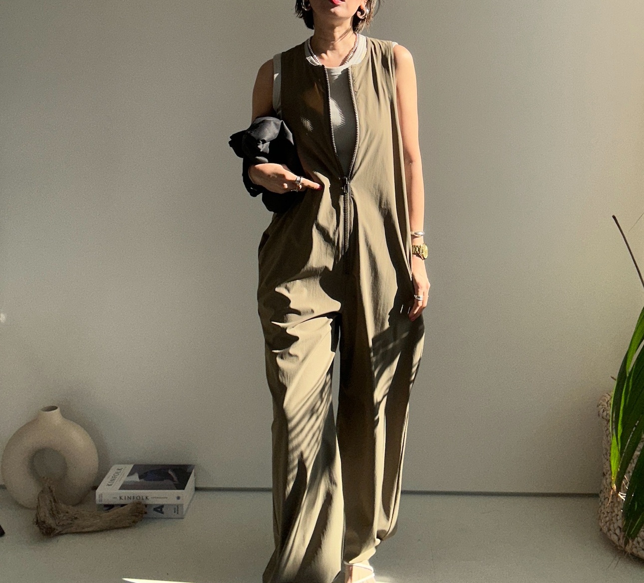 ●SALE●メーカー在庫限り●【3/31 LIVEアイテム】●ストレッチナイロンで伸縮性◎●ジップデザインオールインワン