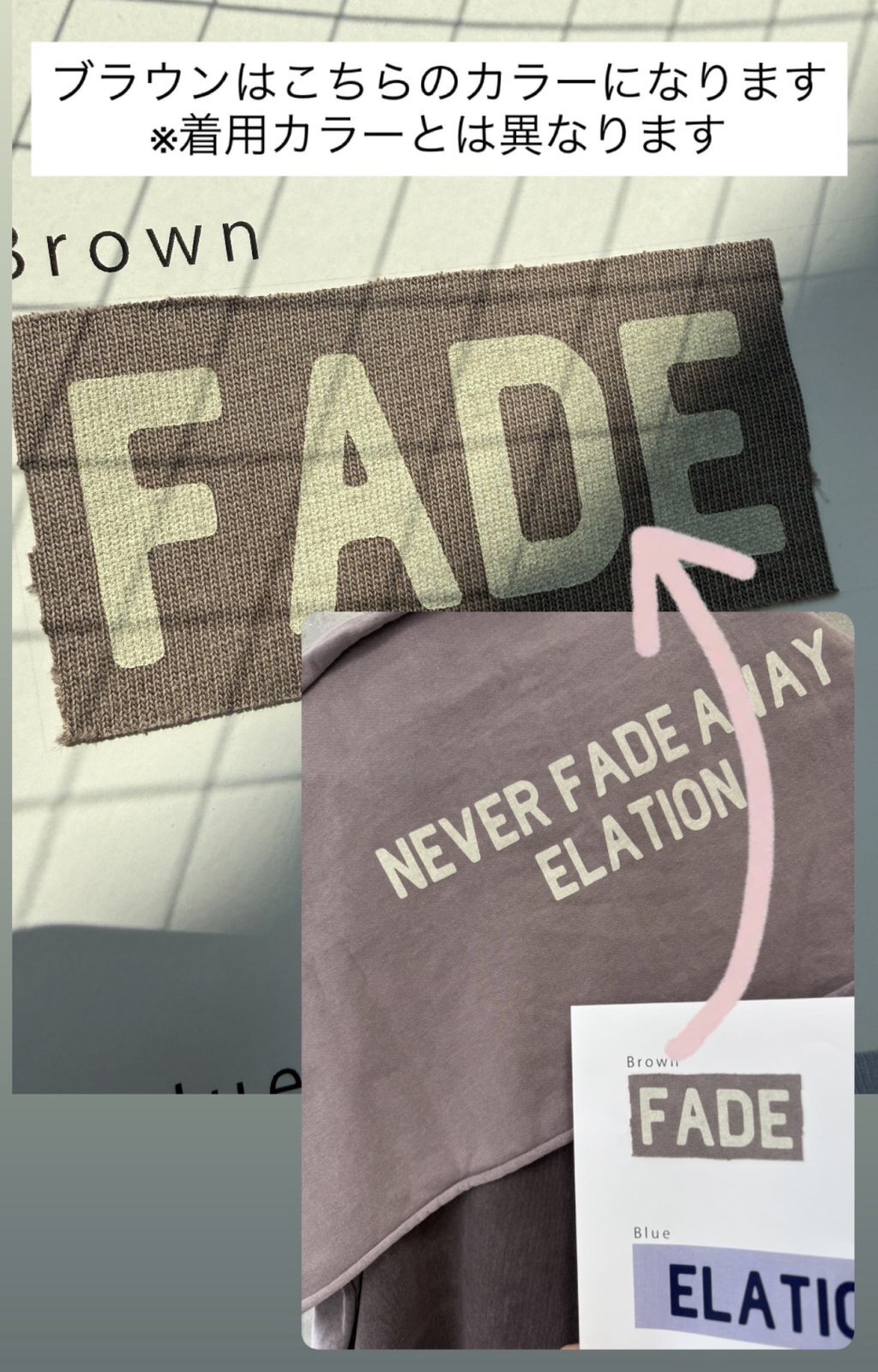 ●ブラウンは着用カラーではなく、生地見本の生地色、ロゴ色になります。