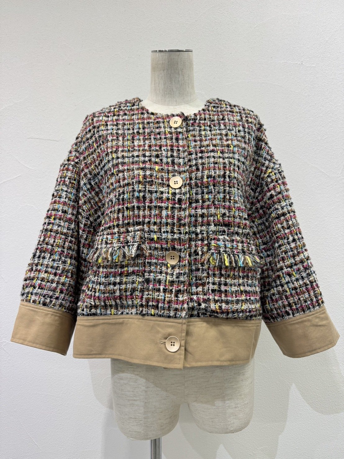●期間限定●ご予約10倍ポイント●【4/18LIVEアイテム】CYAN TOKYO ●ハーフスリーブMIXツイードジャケット(予約/8-9月) [26041701]