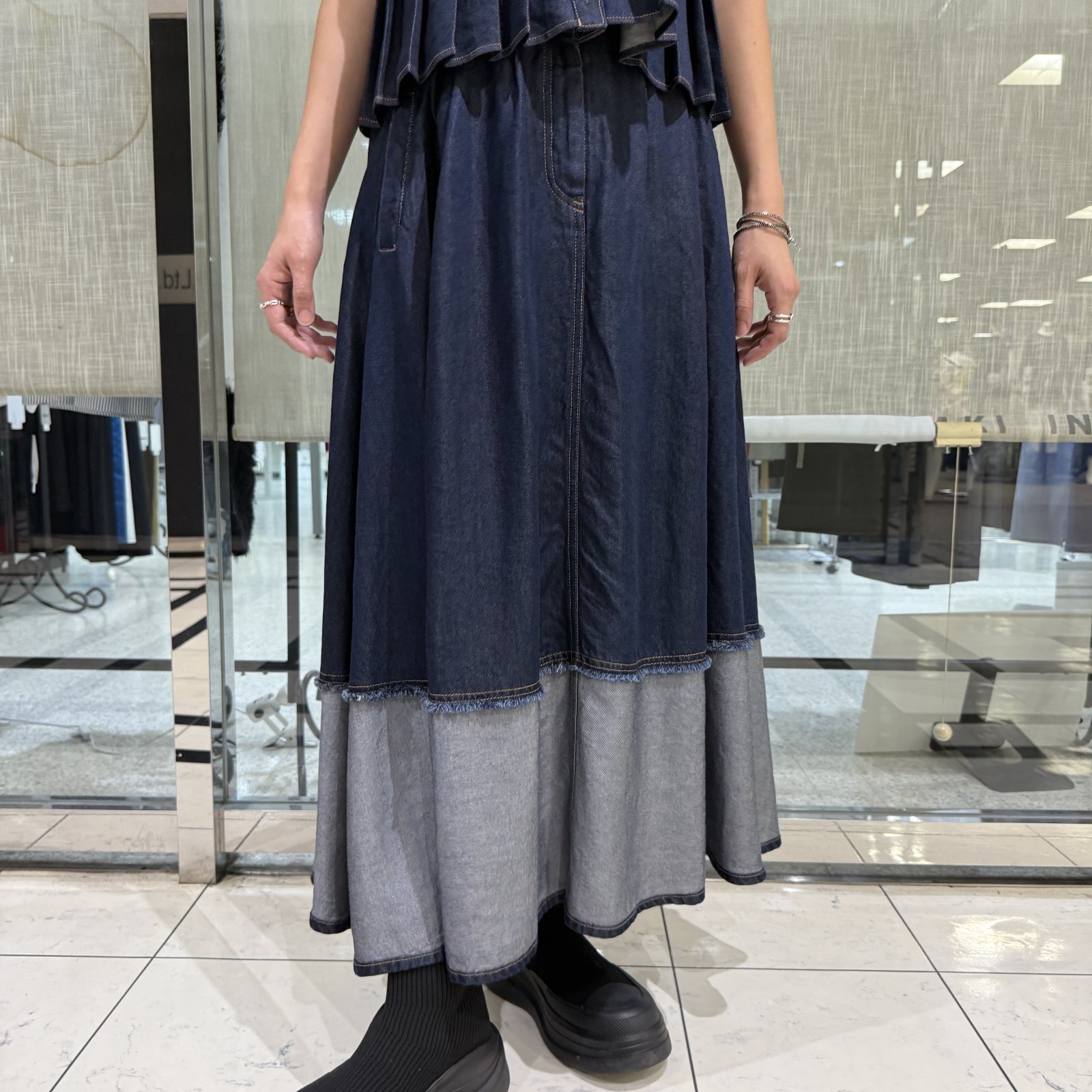 ●生産枠限り●期間限定掲載●ご予約10倍ポイント対象●【10/9 LIVEご紹介アイテム】テンセルデニム切替スカート(予約3) [25100908]