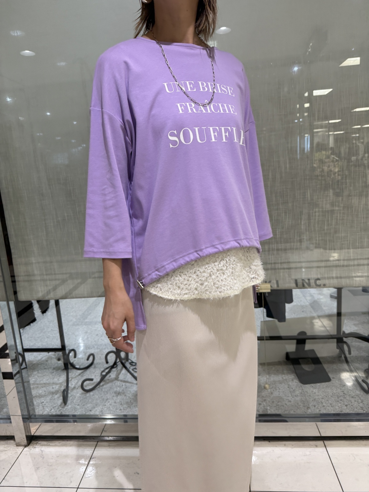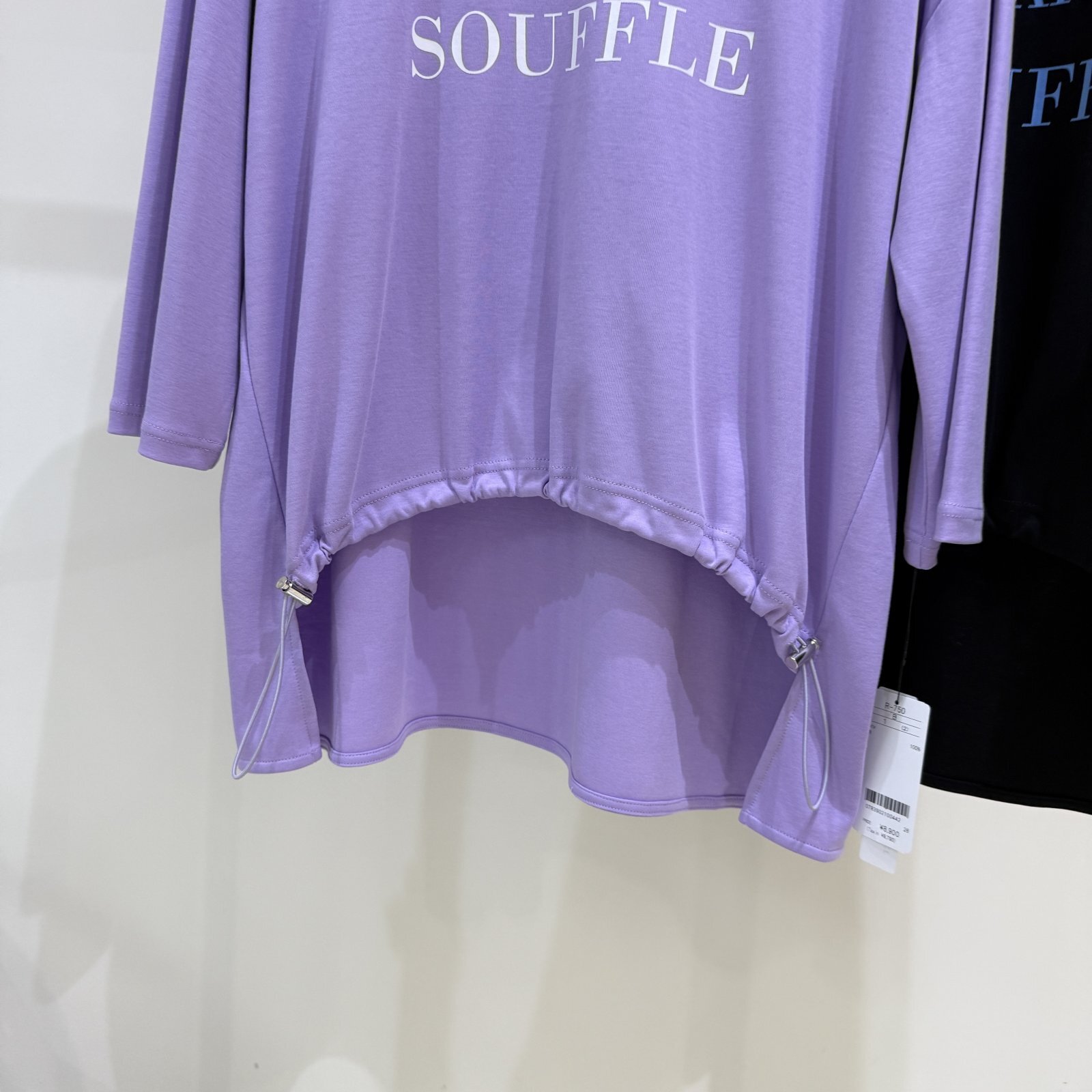 ●生産枠限り●期間限定掲載●ご予約10倍ポイント対象●【10/9 LIVEご紹介アイテム】◎企業努力シリーズ◎前後差ロゴ八部袖トップス(予約3) [25100919]