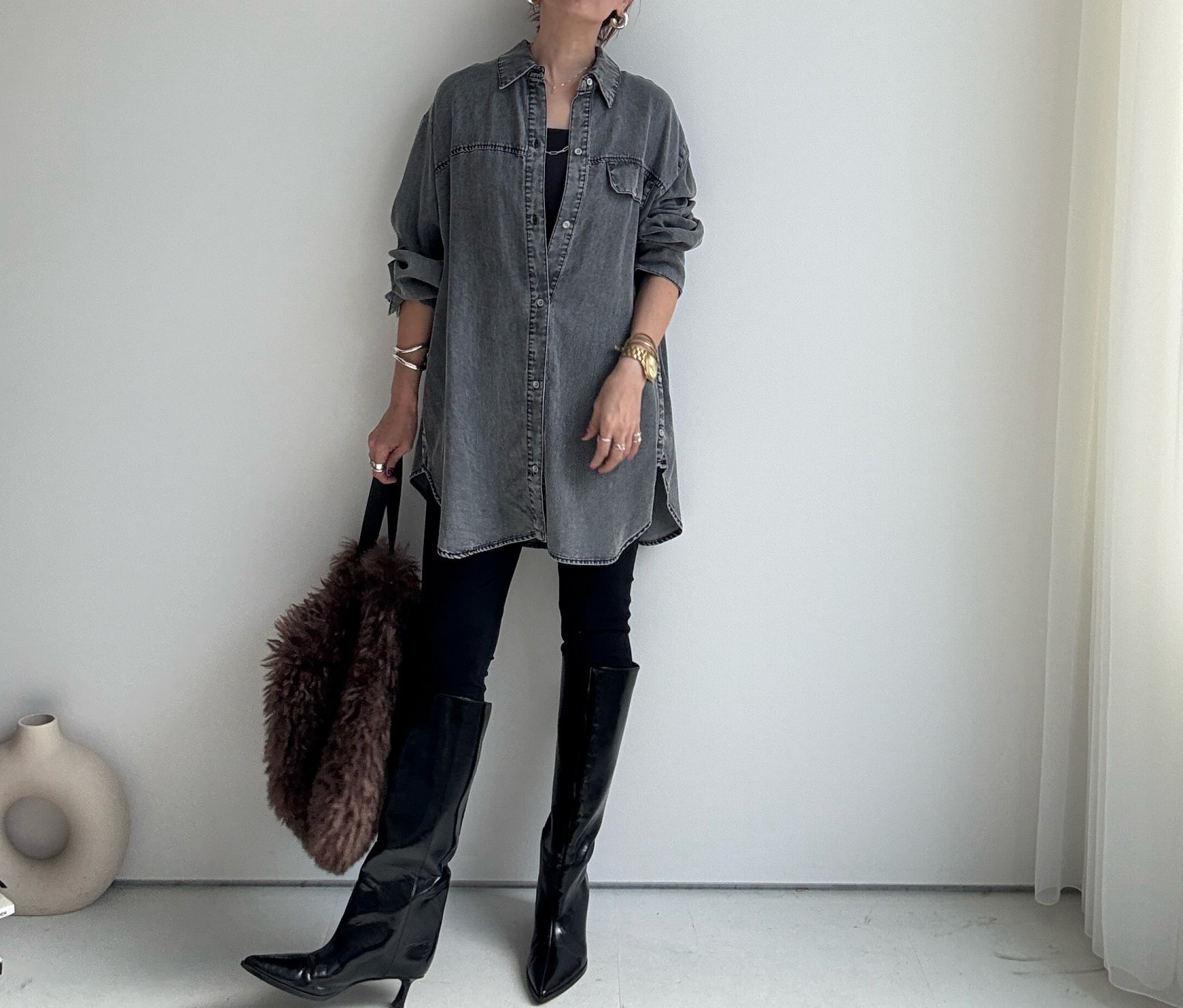 ●珍しいロング丈でレギンスやスキニー合わせにも◎【10/14 LIVEアイテム】テンセルデニムロングシャツ