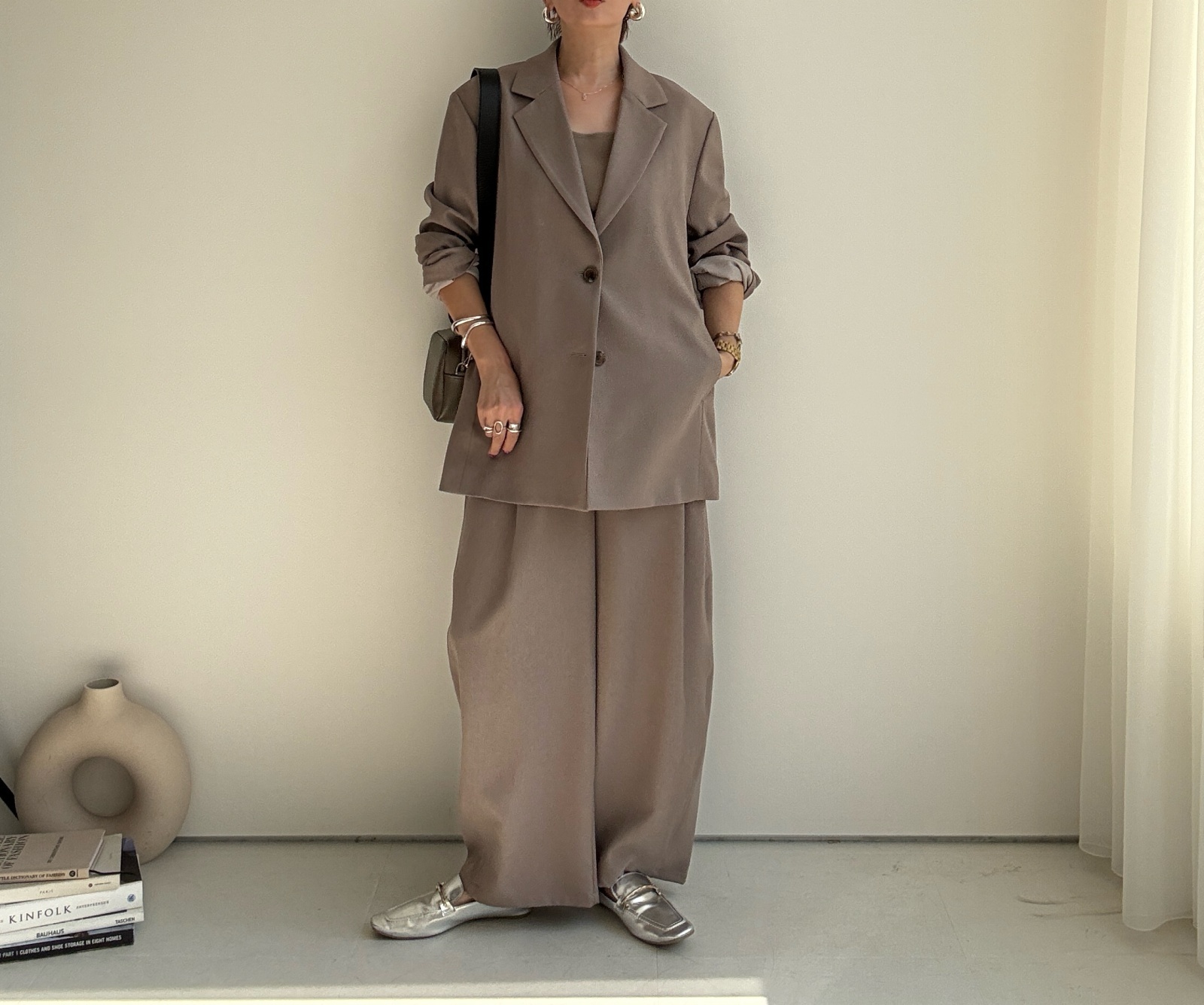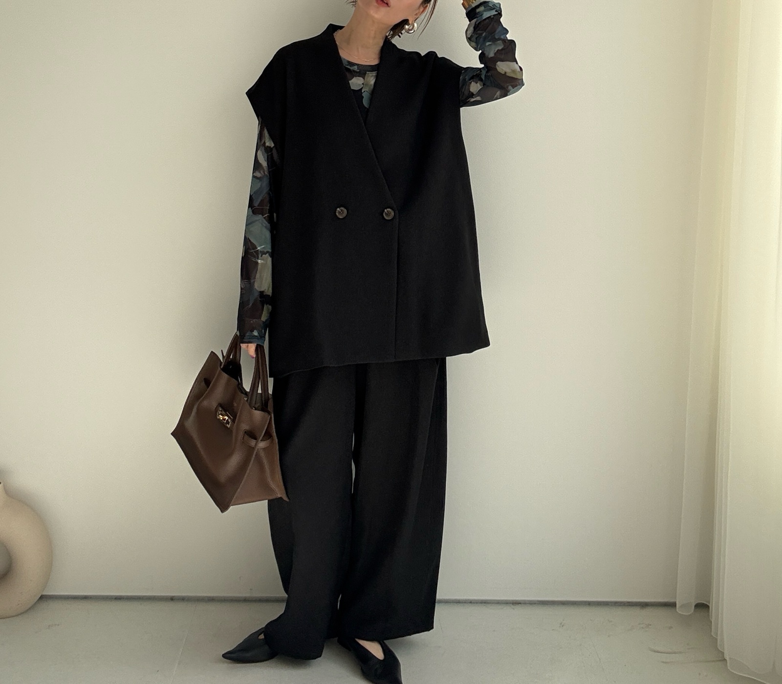 ●2サイズ展開◎セットアップ可能【10/14 LIVEアイテム】カーブシルエットタックパンツ [25101410]
