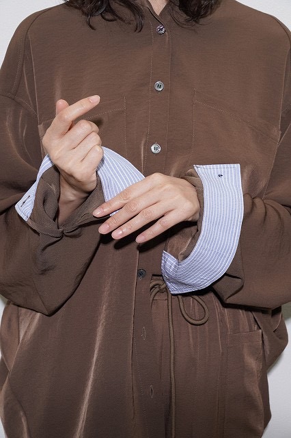 ●CYAN TOKYO●期間限定●ご予約10倍ポイント対象●【10/17 LIVEご紹介アイテム】アームドレープグロッシーオーバーシャツ(予約/2-3) [25101722]