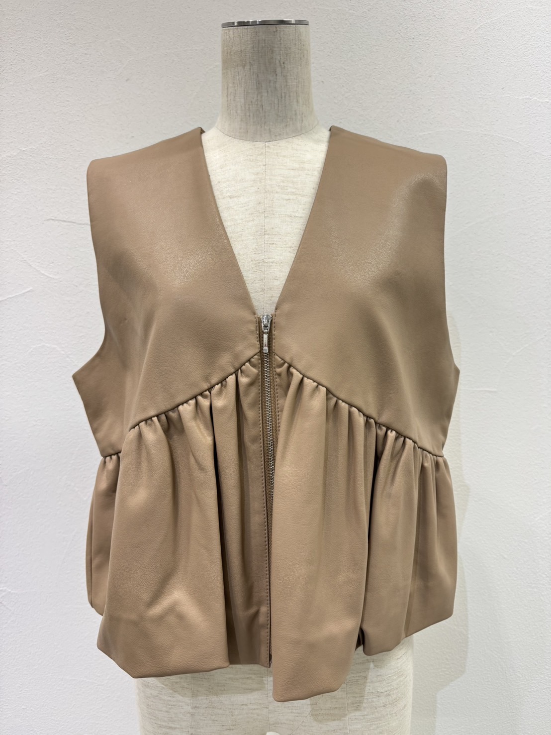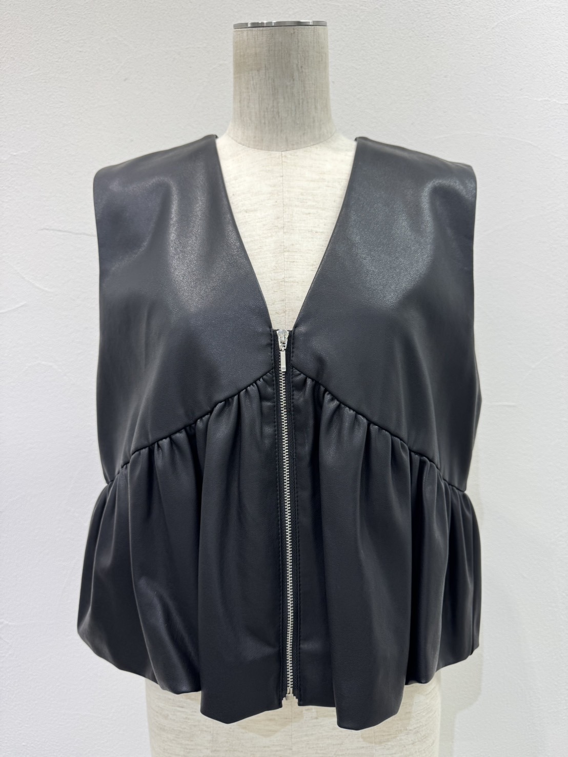 ●CYAN TOKYO●期間限定●ご予約10倍ポイント対象●【10/17 LIVEご紹介アイテム】ヴィーガンレザーバルーンギャザーベスト(予約/2-3) [25101724]