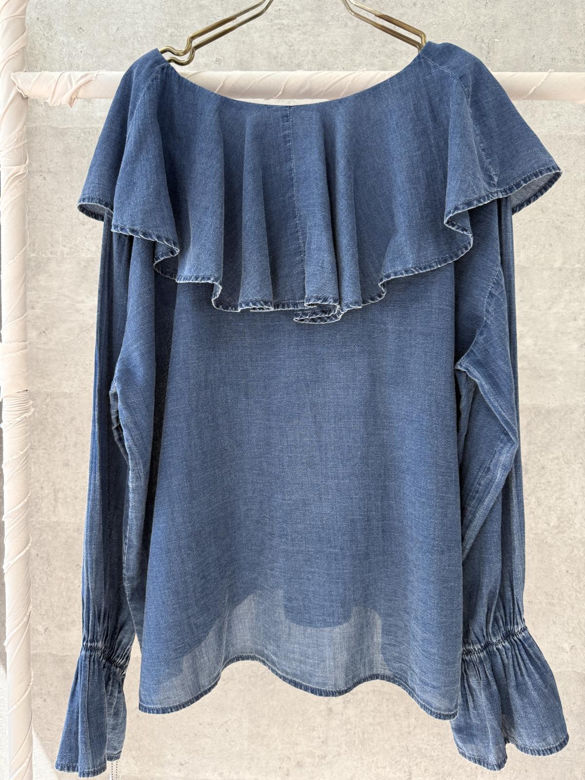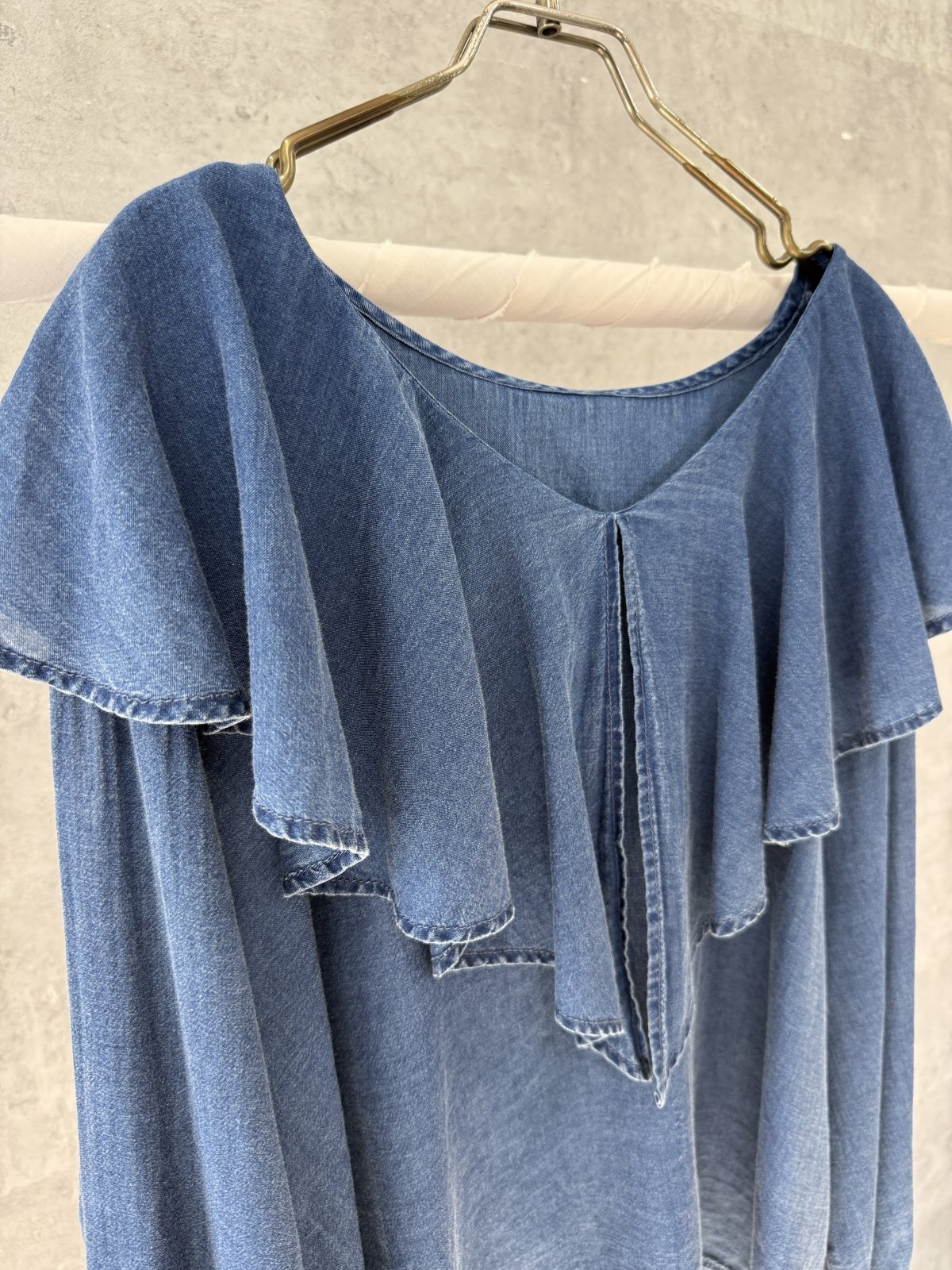 ●期間限定●ご予約10倍ポイント対象●【10/27 LIVEアイテム】シアーデニムラッフルブラウス(予約/2) [25102807]