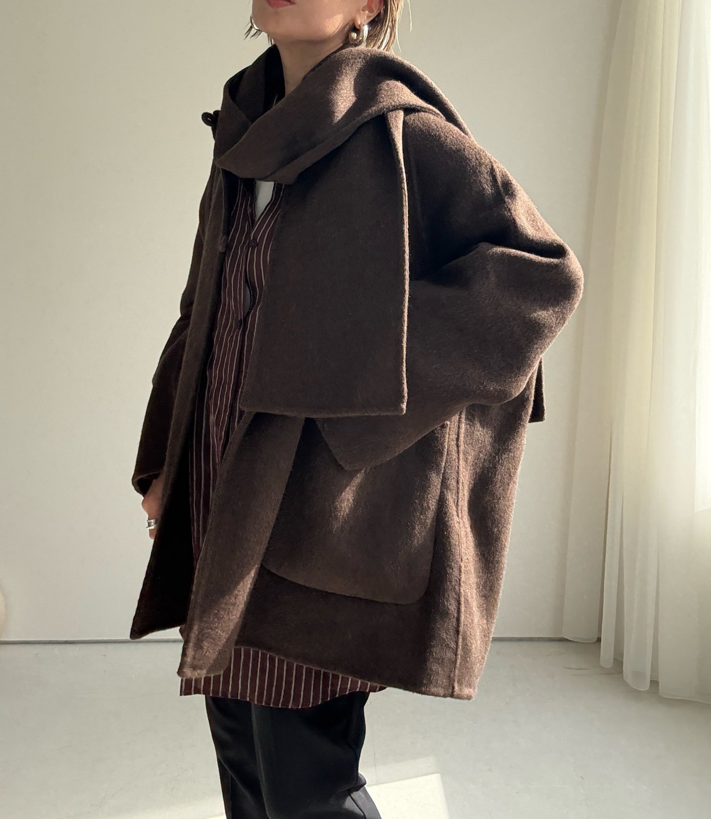 ●数量限定●アウターフェア●期間限定●【11/11 LIVEアイテム】ストール付ハーフコート(メーカー確認後お取り寄せ) [25111102]
