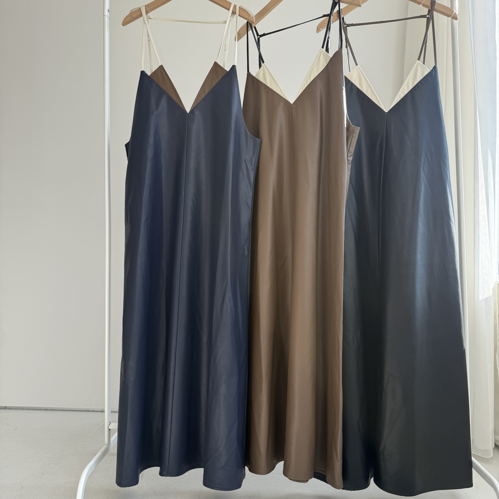 ●年末年始限定SALE●【12/28 LIVEアイテム】●バイカラーレザーライクキャミワンピ (メーカー確認後確保) [25122803]