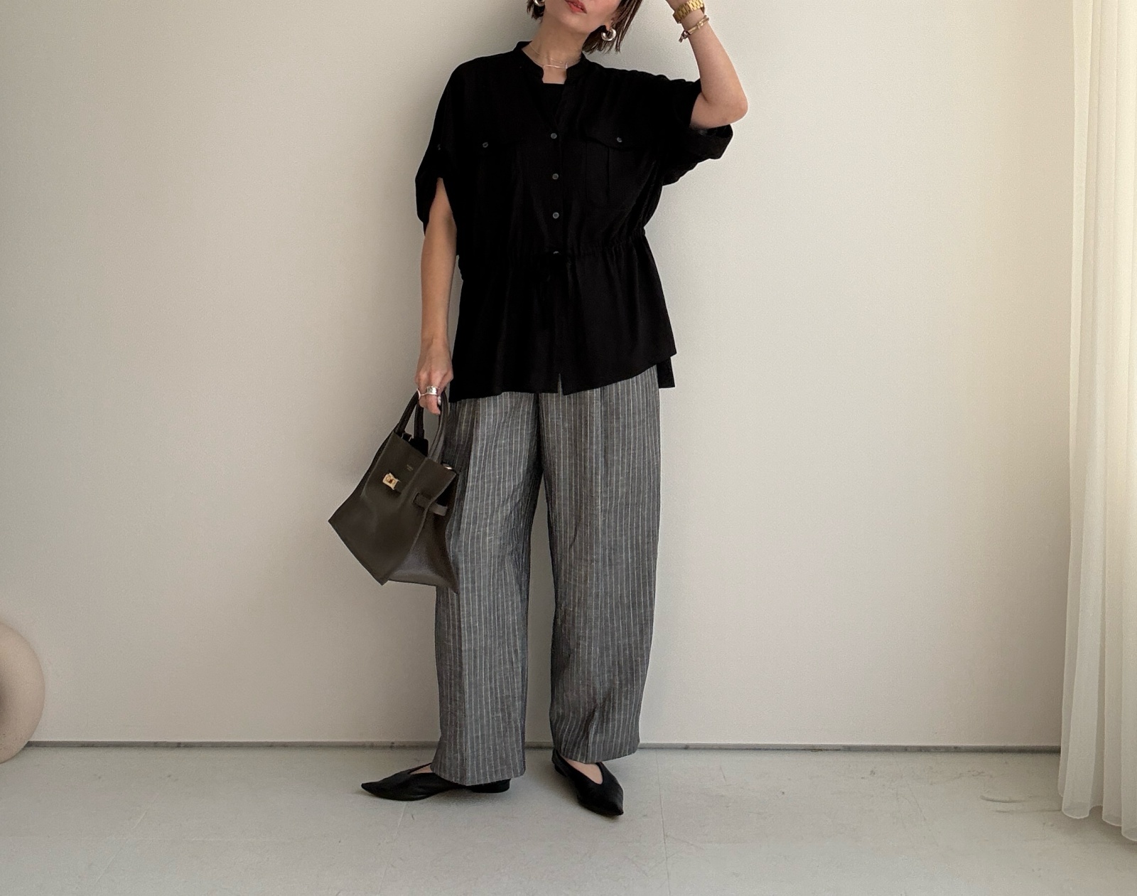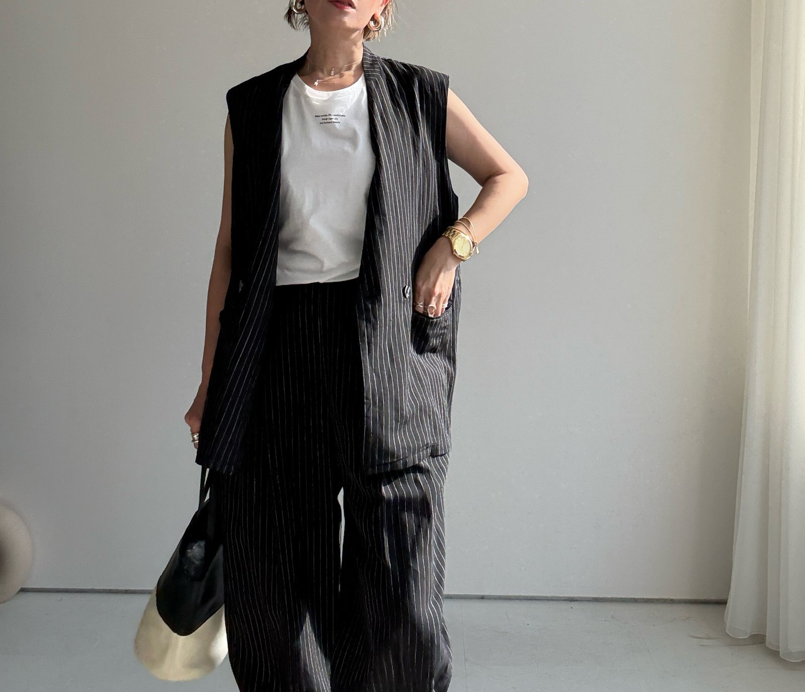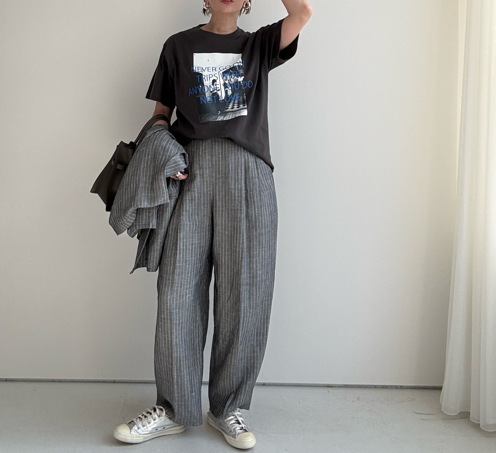 ●期間限定/ご予約10倍ポイント●【1/17 LIVE】リネンミックスピンストライプバレルパンツ(セットアップ可能)(予約/4-5) [26011702]
