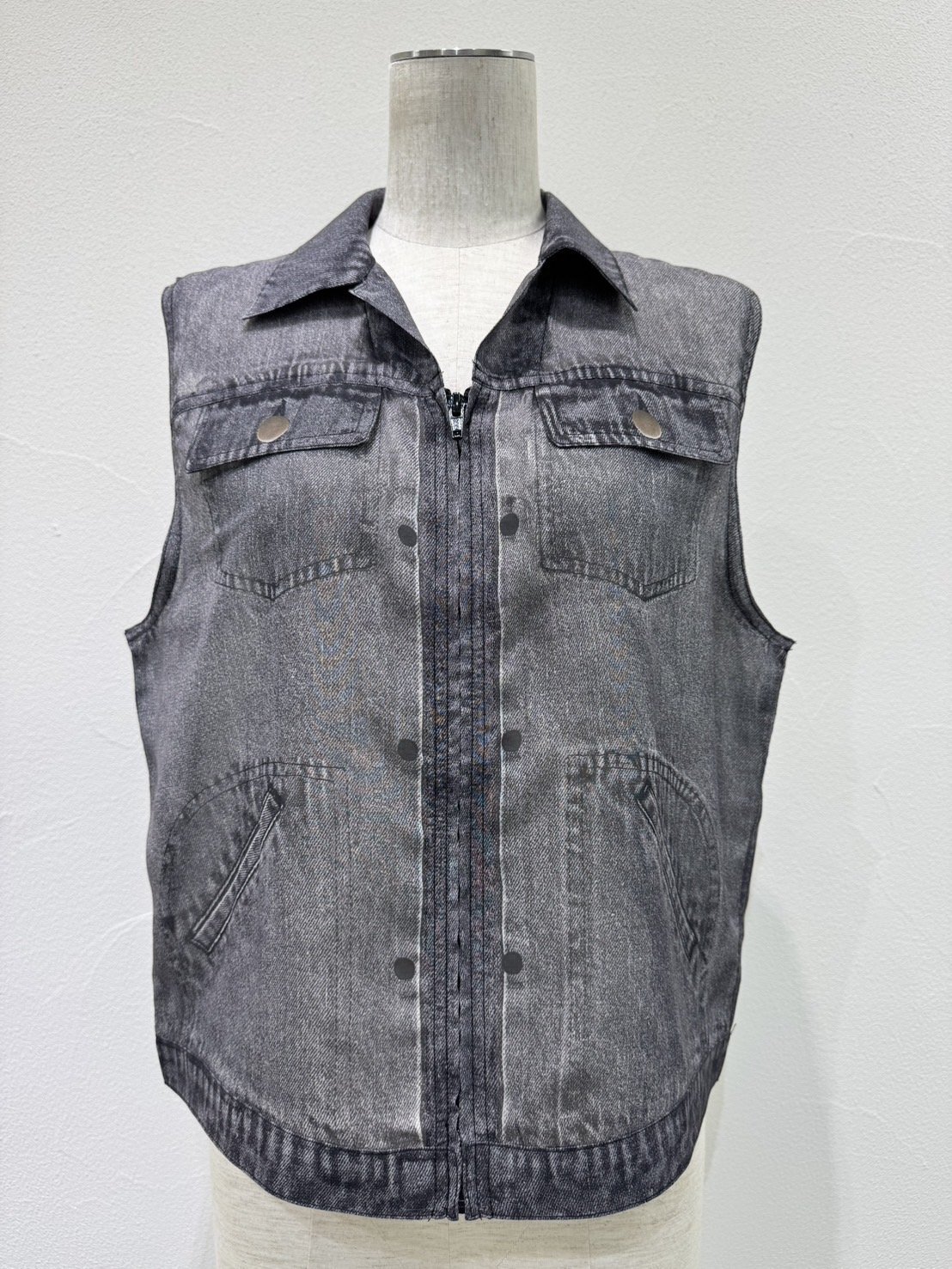 ●期間限定/ご予約10倍ポイント●【1/23 CYAN TOKYO】デニム転写シフォンベスト(予約/4-5)