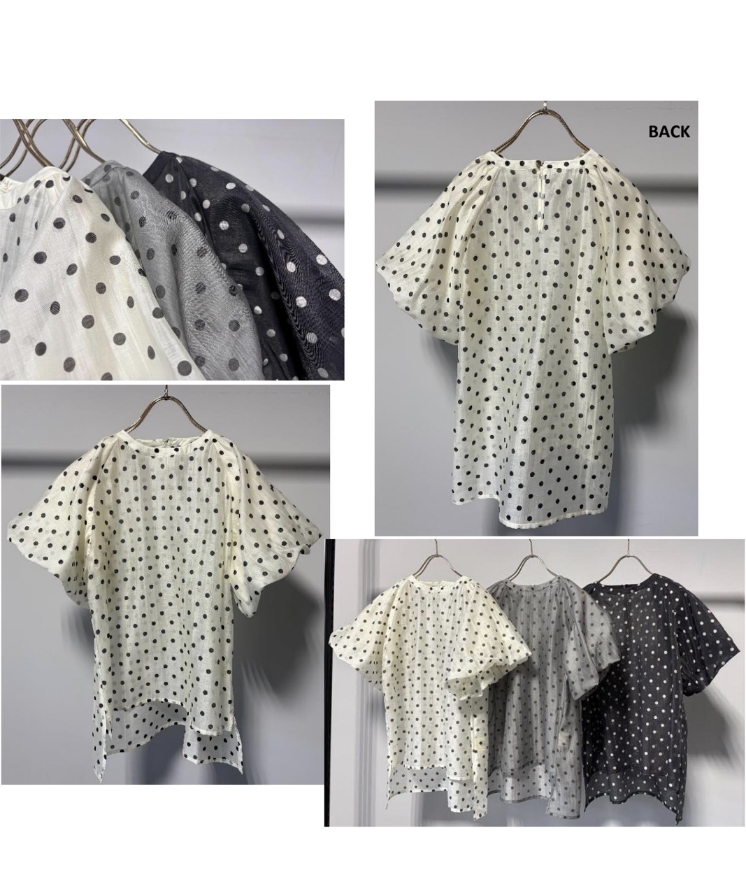●期間限定/ご予約5倍ポイント●【1/24 Margaux vintage】シアードットパフスリーブブラウス(予約/3-4) [26012423]