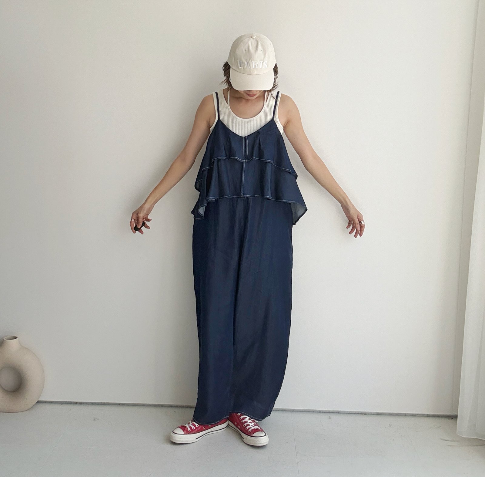 ●数量限定/メーカー在庫限り●【2/14LIVE】テンセルデニムフリルオールインワン