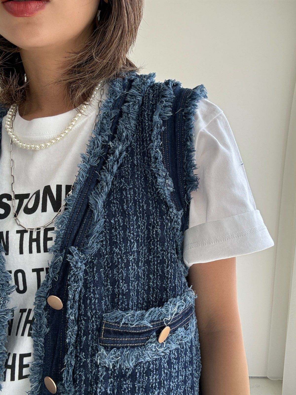 ●身長問わずおすすめ◎【3/9 LIVEアイテム】●フリンジデニムベスト(メーカー確認後確保) [26030902]