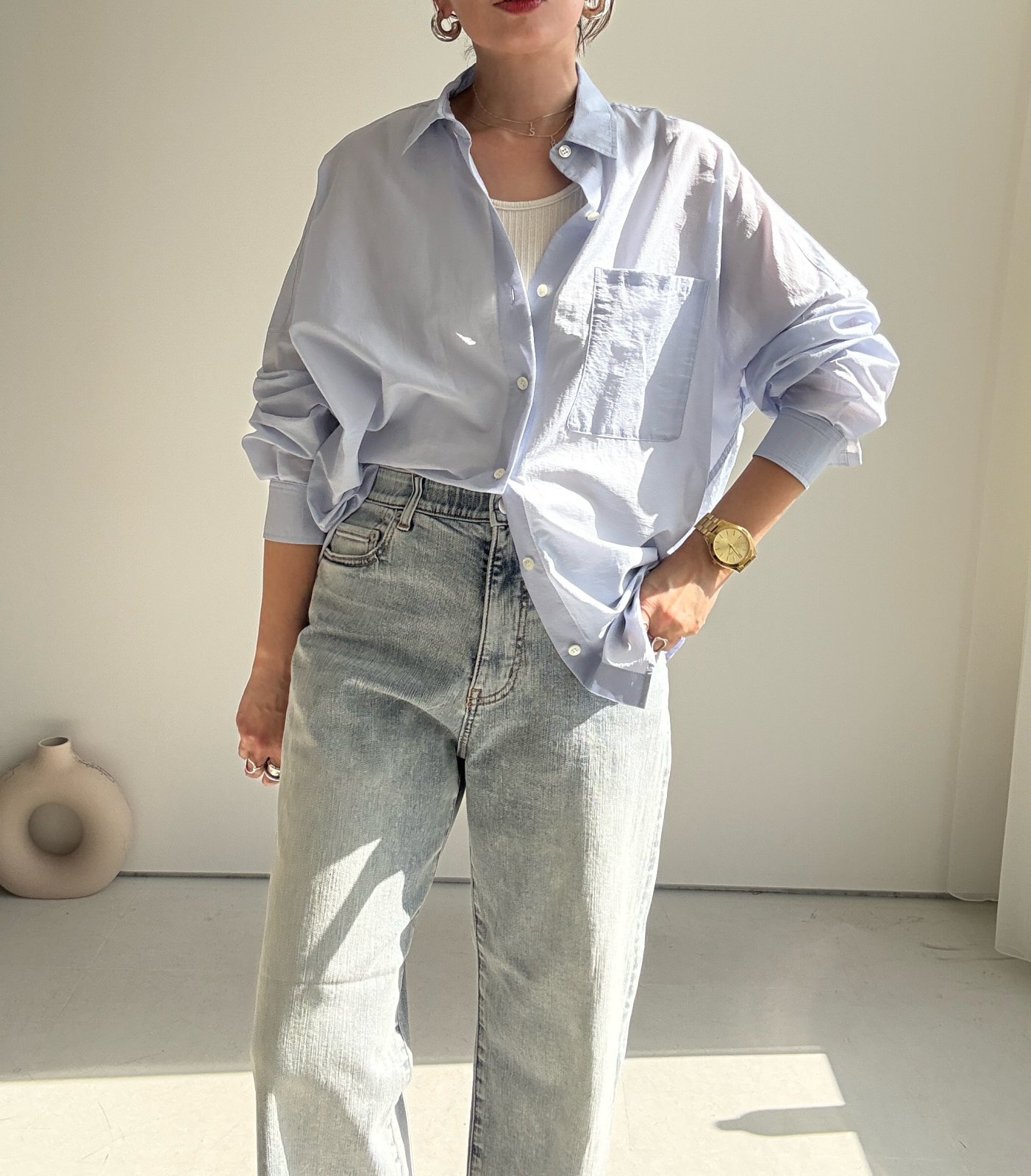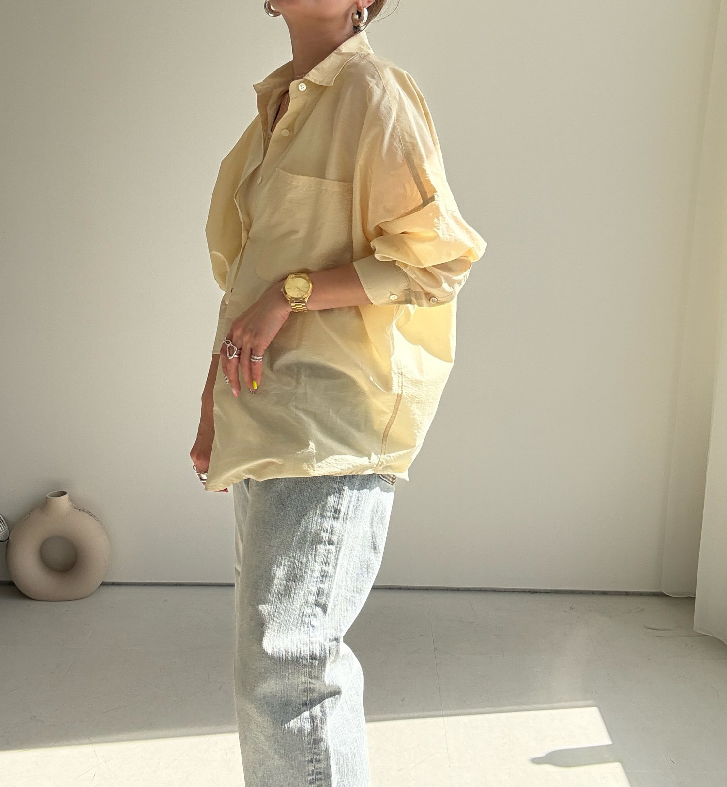 ●身幅ゆったり【3/9 LIVEアイテム】●スプリングカラーシアーシャツ