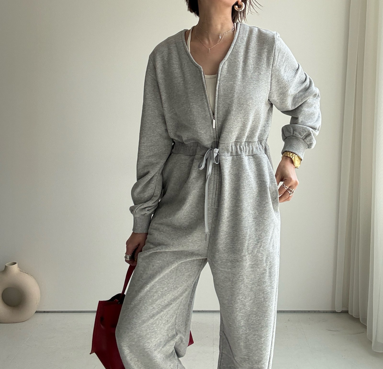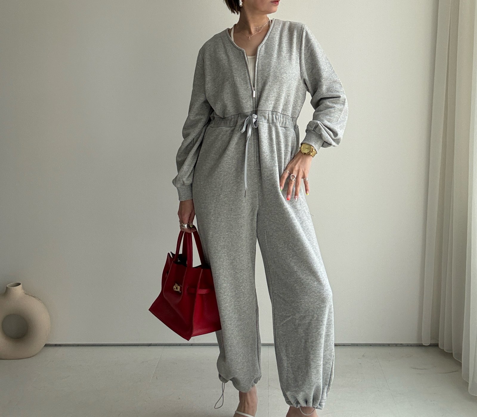 ●メーカー在庫限り【3/16 LIVEアイテム】●Vネックジップスエットジャンプスーツ(メーカー確認後確保) [26031501]