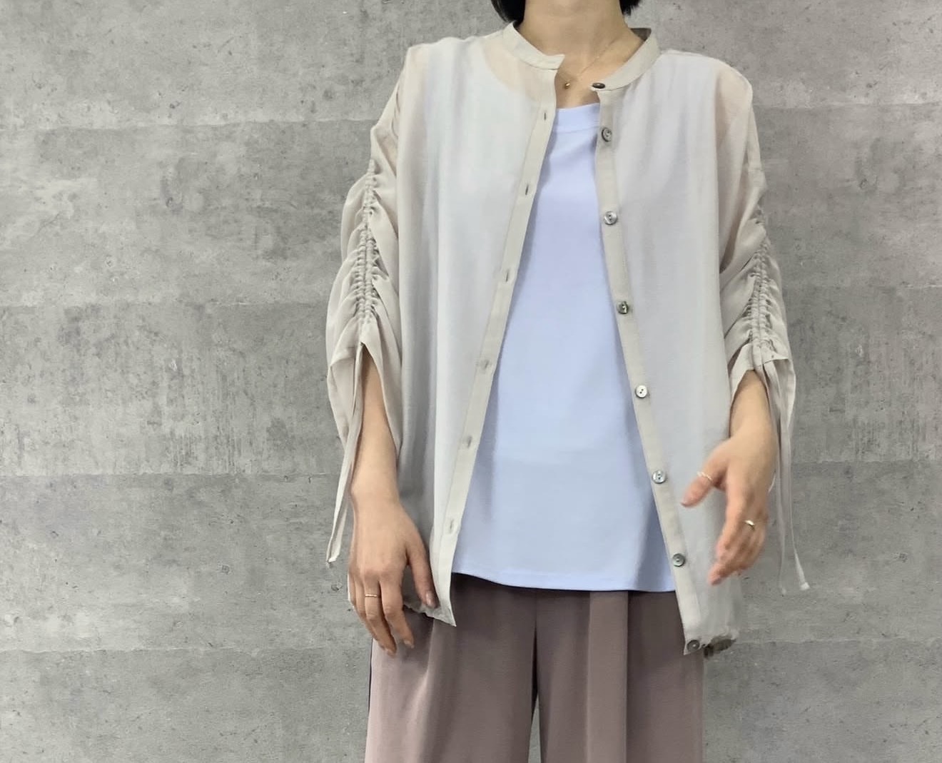 ●期間限定●ご予約5倍ポイント●【4/3LIVEアイテム】ギャザースリーブシアーブラウス(予約/5月) [26040304]