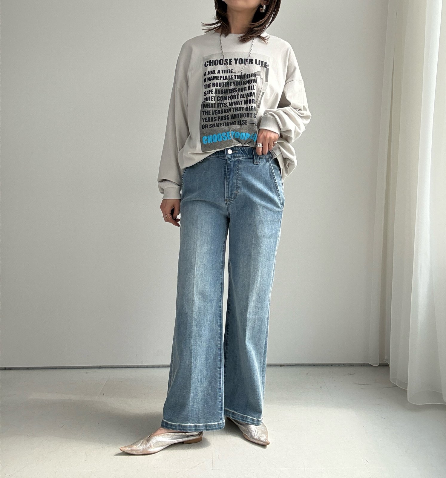 ●私たちの推しデニムに新型登場!●期間限定●ご予約10倍ポイント●【4/11LIVEアイテム】ワイドストレートデニム(予約/8-9月) [26041012]