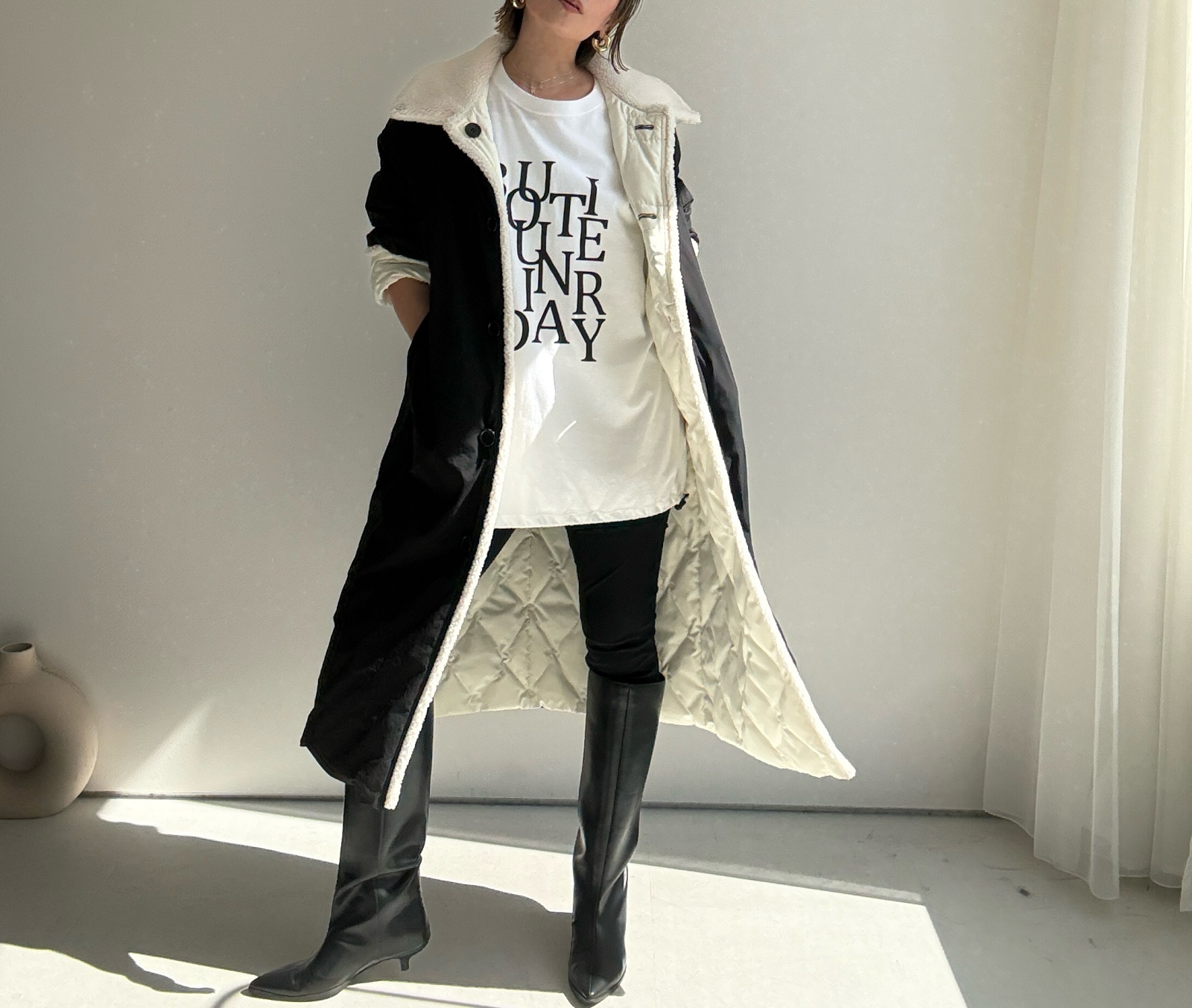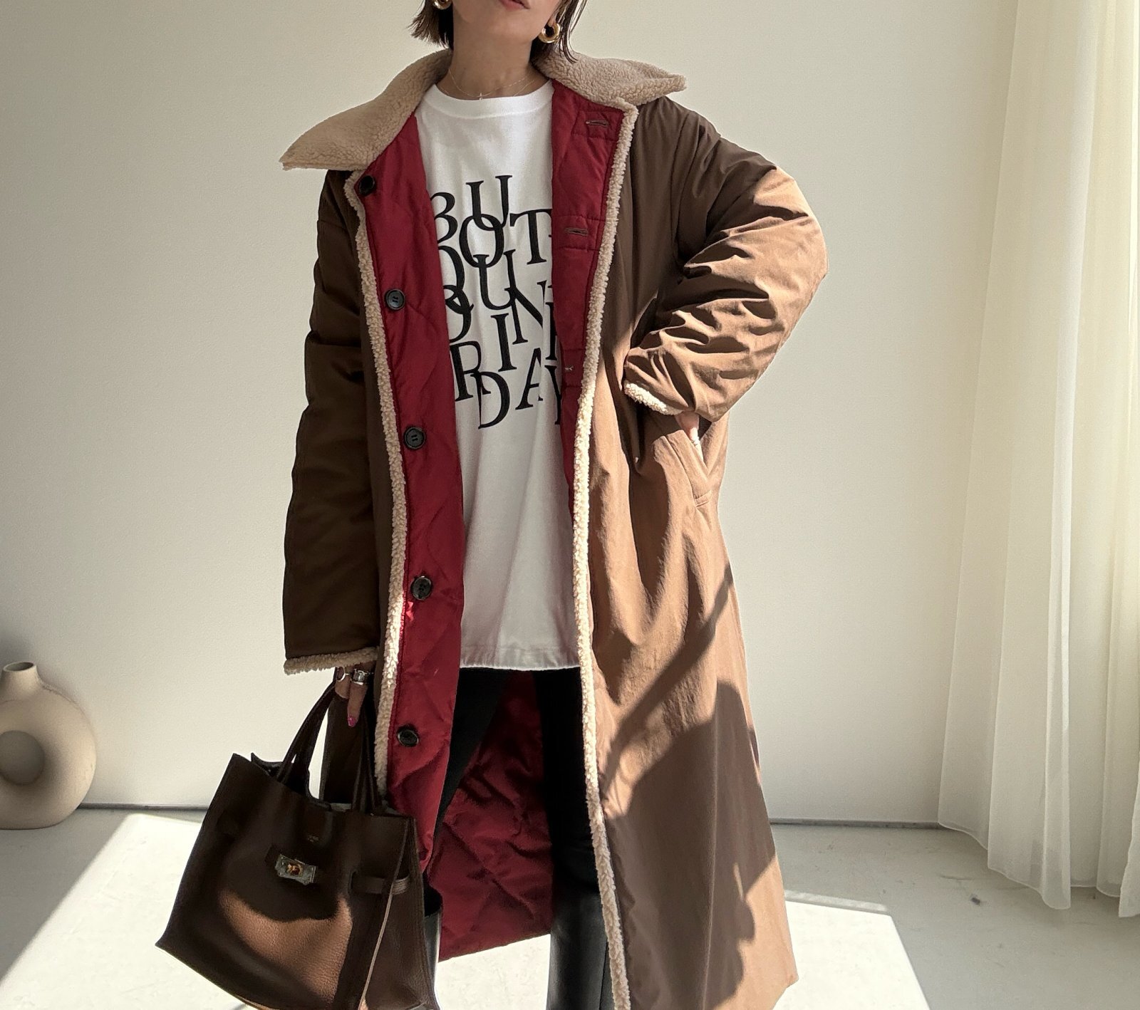 ●期間限定●ご予約10倍ポイント●【4/11LIVEアイテム】ボアトリムリバーシブルダウンコート(予約/9-10月)