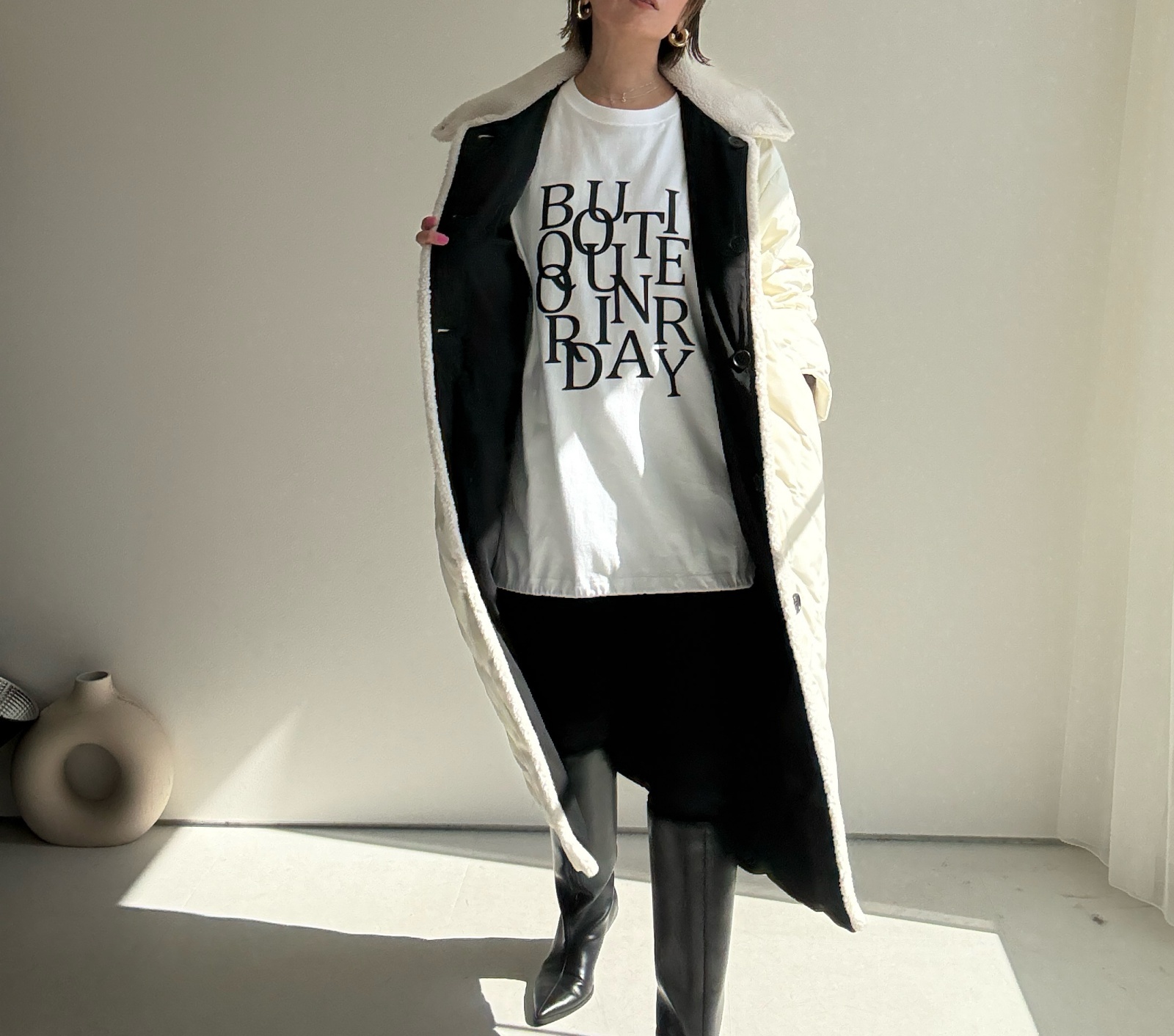 ●期間限定●ご予約10倍ポイント●【4/11LIVEアイテム】ボアトリムリバーシブルダウンコート(予約/9-10月) [26041014]