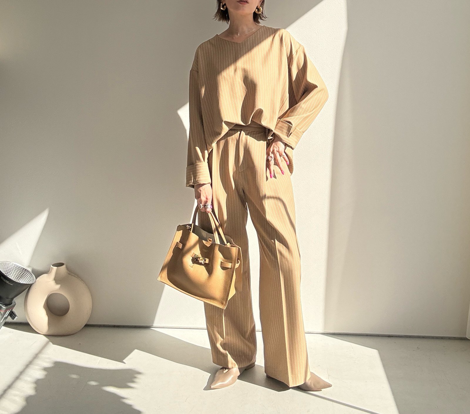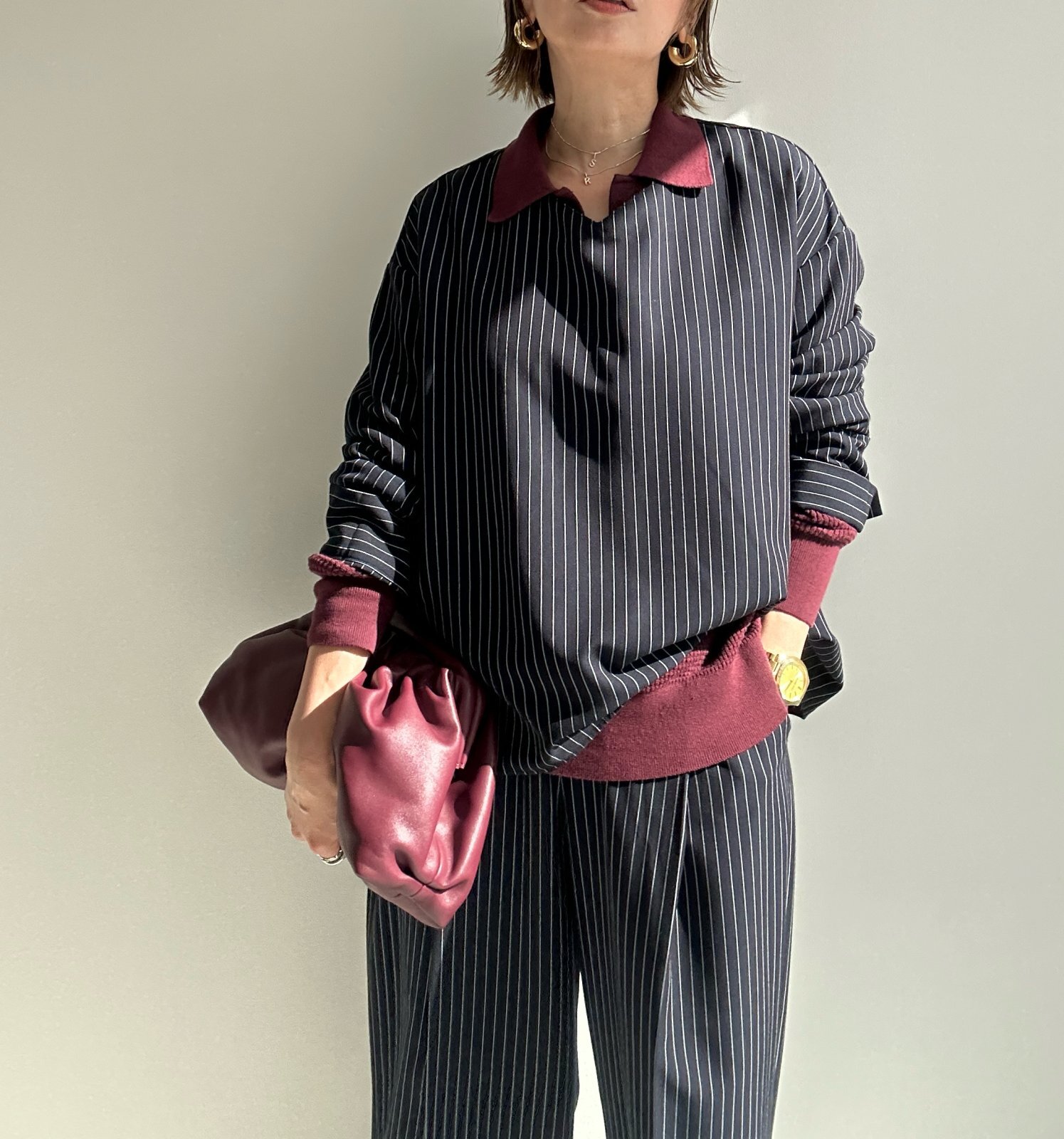 ●期間限定●ご予約10倍ポイント●【4/11LIVEアイテム】ピンストライプVネックプルオーバー(予約/8-9月)