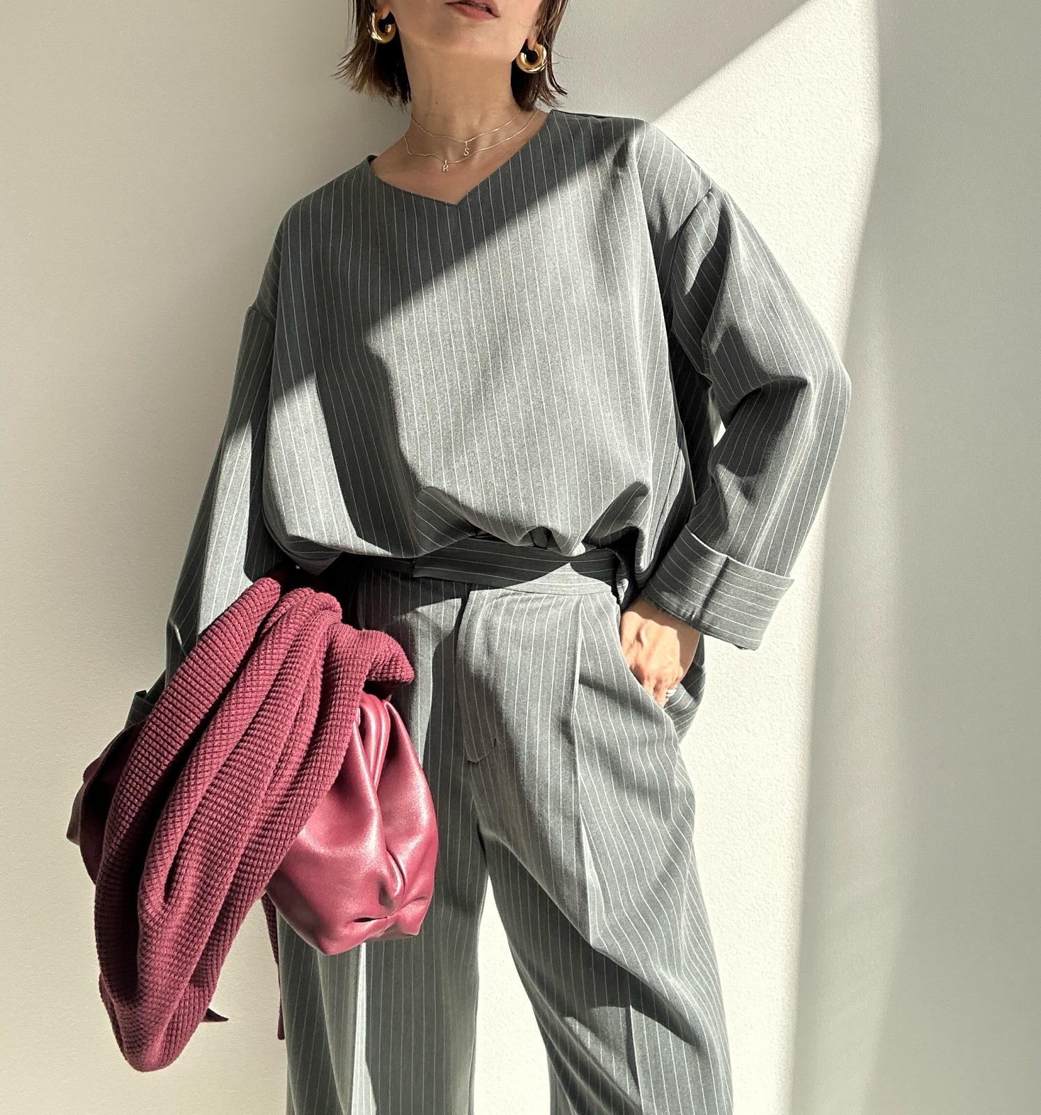 ●期間限定●ご予約10倍ポイント●【4/11LIVEアイテム】ピンストライプVネックプルオーバー(予約/8-9月) [26041019]