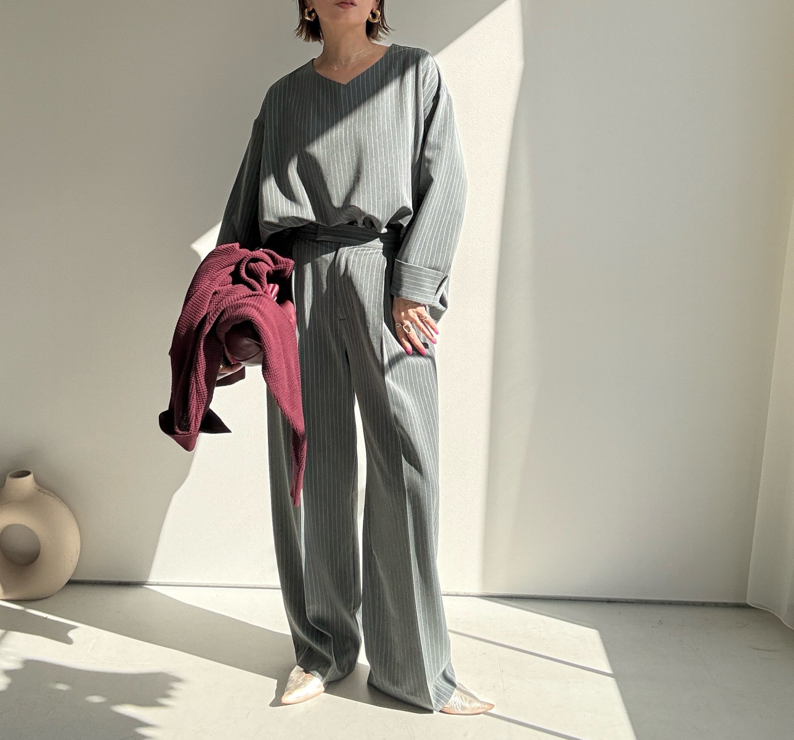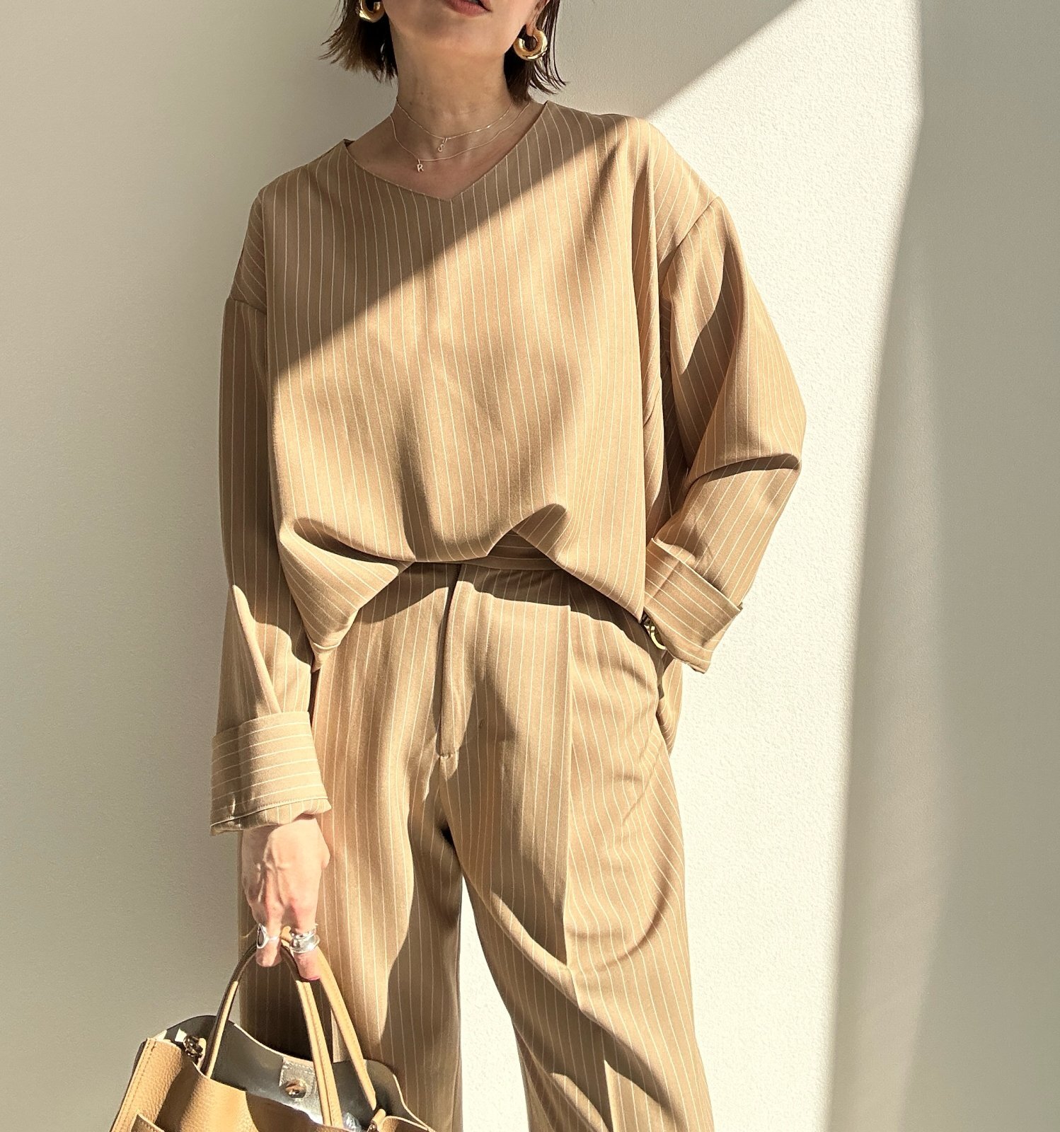 ●期間限定●ご予約10倍ポイント●【4/11LIVEアイテム】ピンストライプタックワイドパンツ(予約/8-9月)