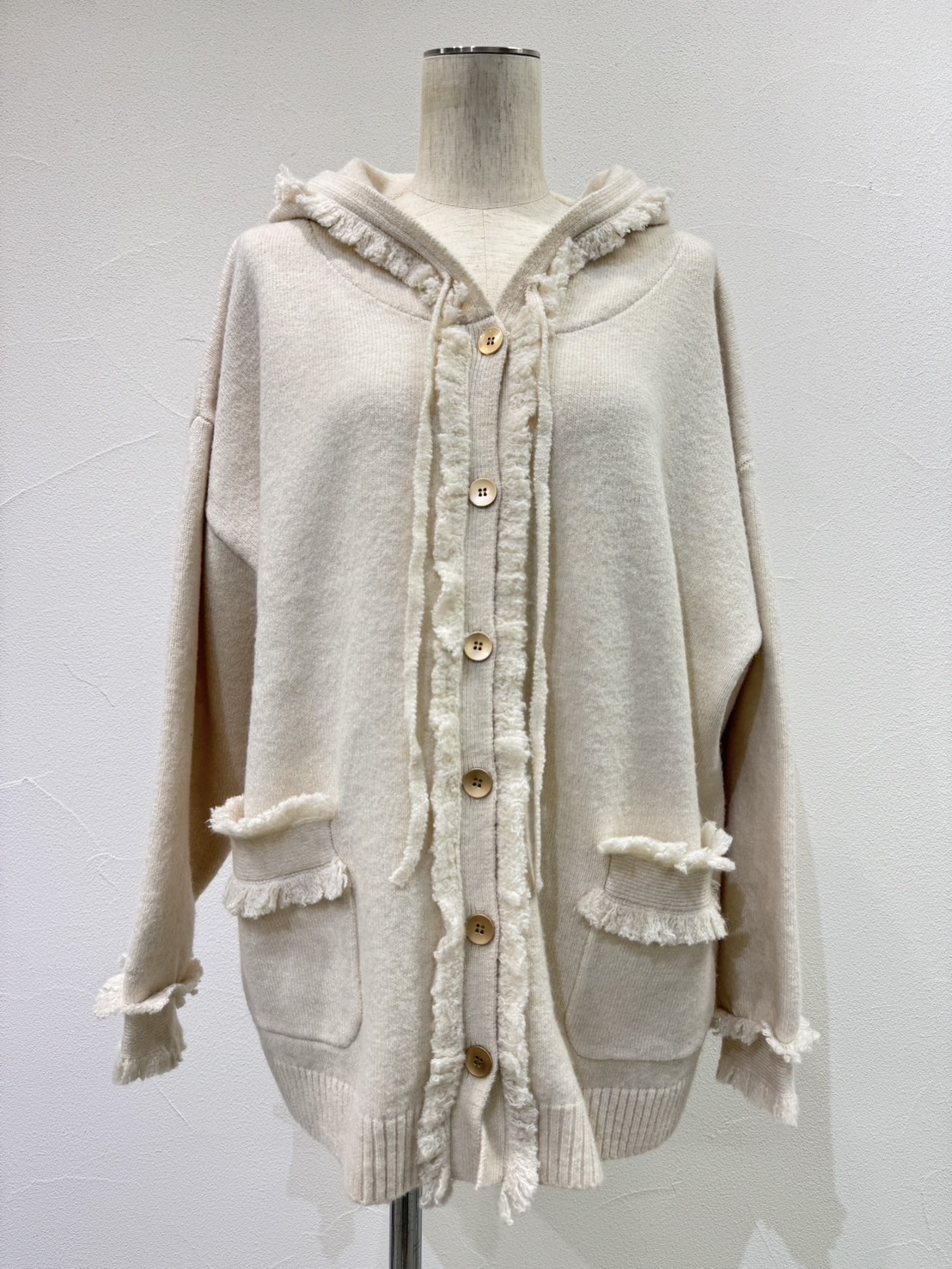 ●期間限定●ご予約10倍ポイント●【4/18LIVEアイテム】CYAN TOKYO ●トリムフリンジニットフーディ(予約/9-10月)