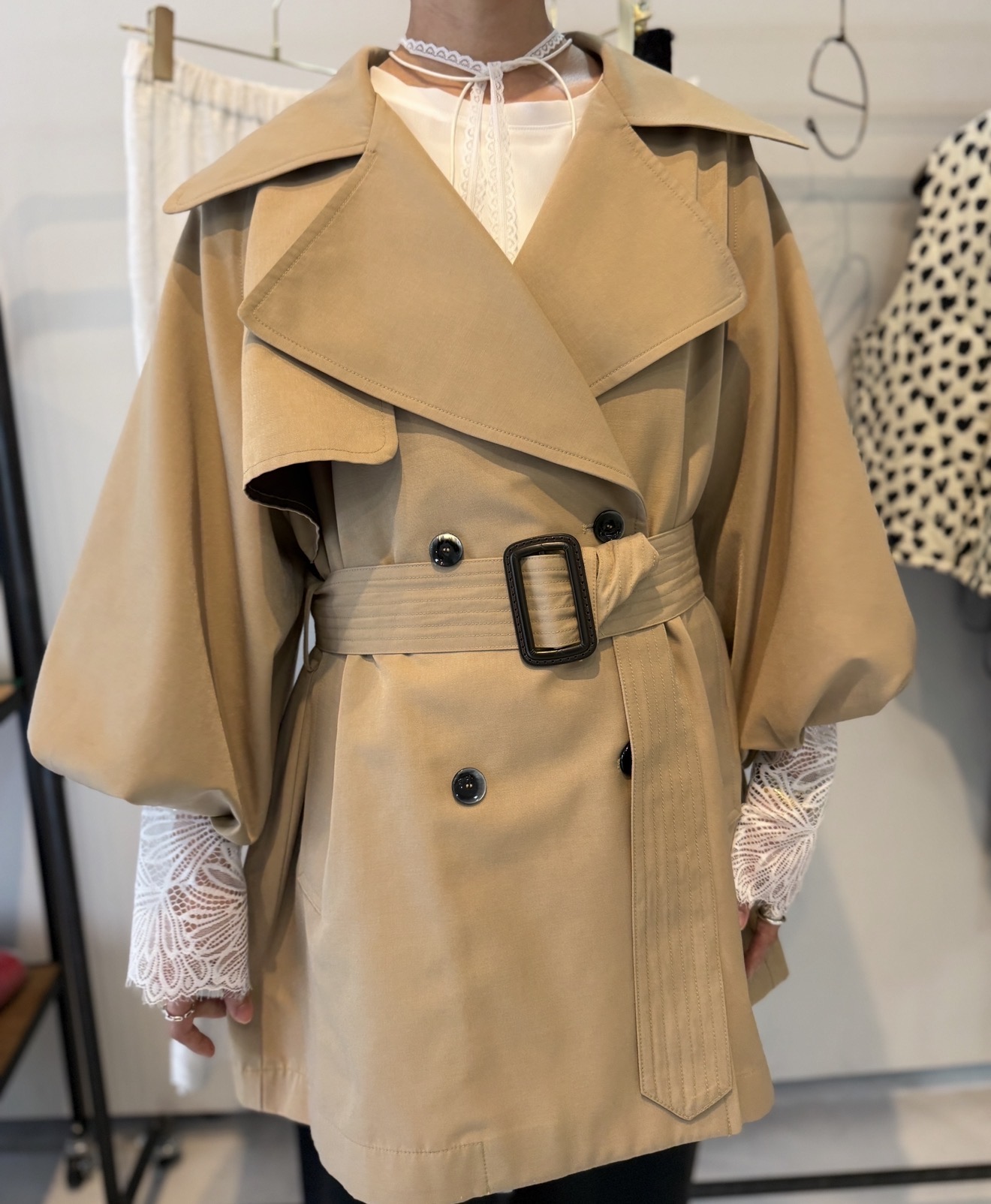 ●期間限定●ご予約10倍ポイント●【Margaux Vintage】●バルーンスリーブミドル丈トレンチ(予約/8-9月) [26042305]